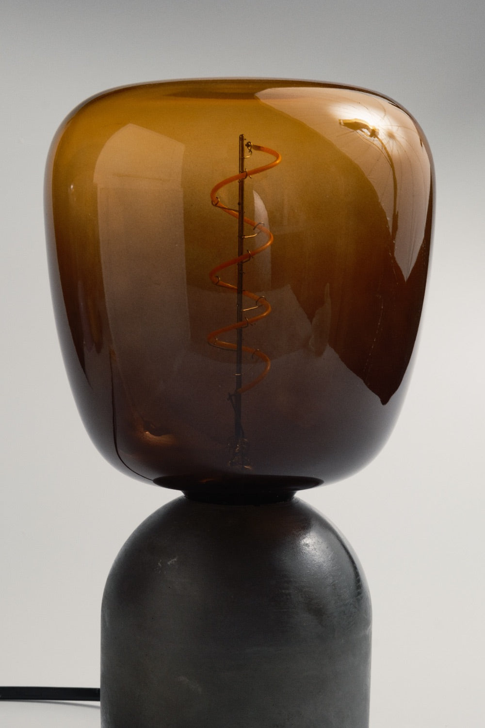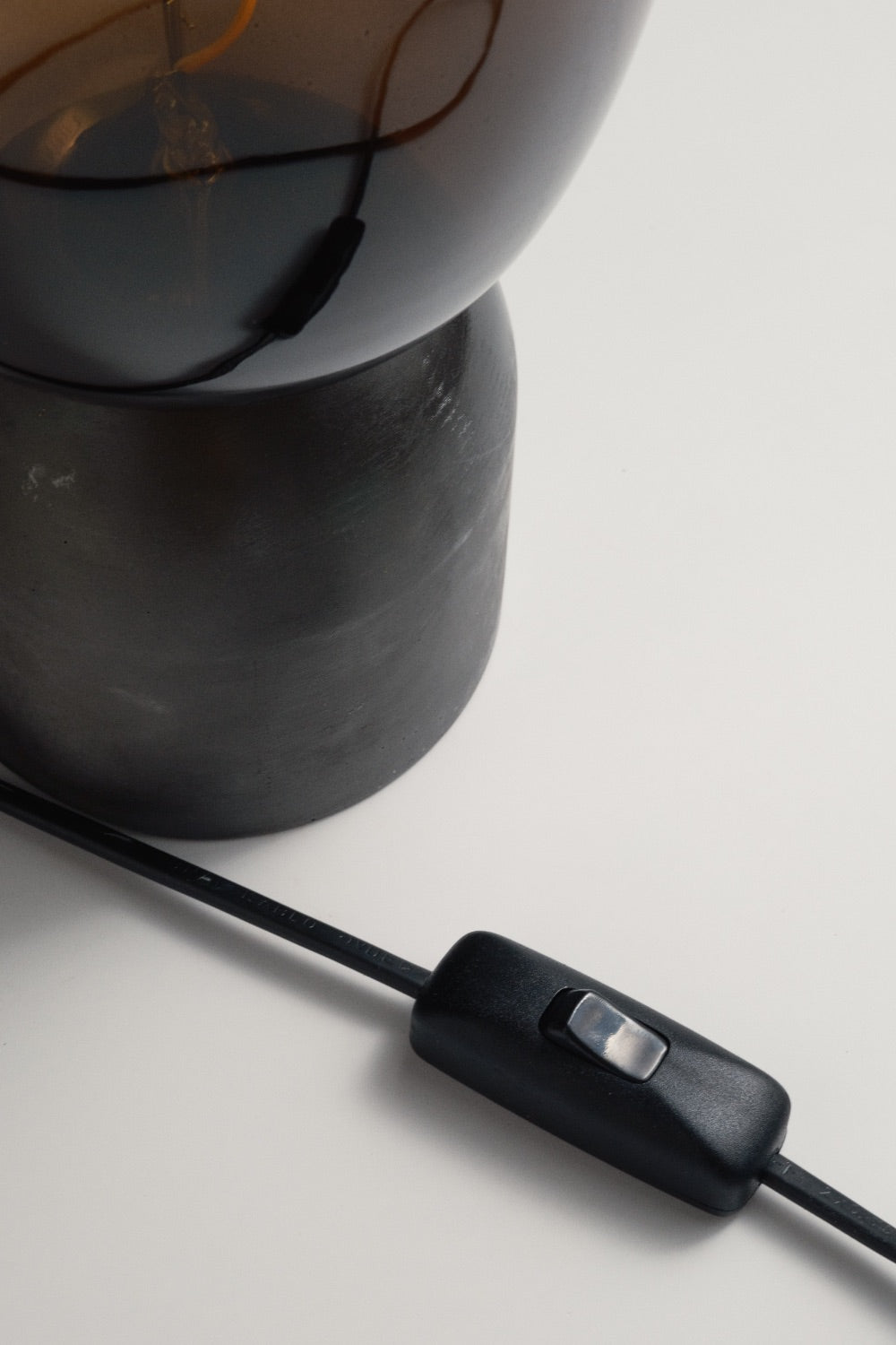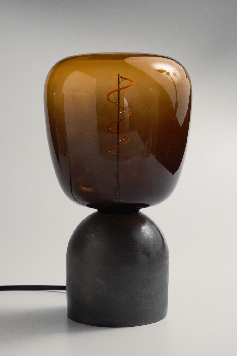 El yapımı beton kaide ve özel renkte seçilmiş cam şapka ile tasarlanmış masa lambası