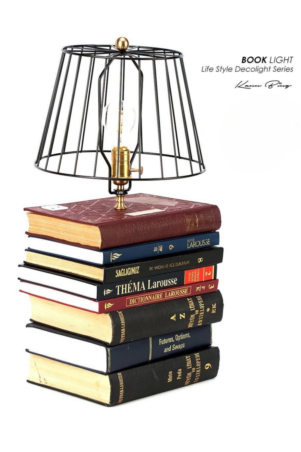 Malzeme: Gerçek kitaplar + metal şapka + pirinç kaplama soket