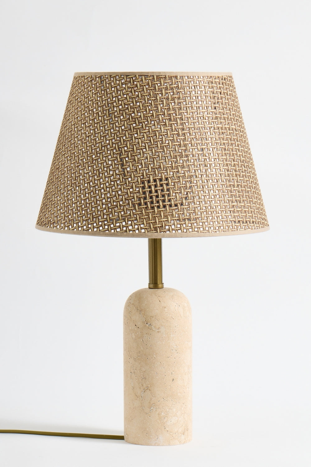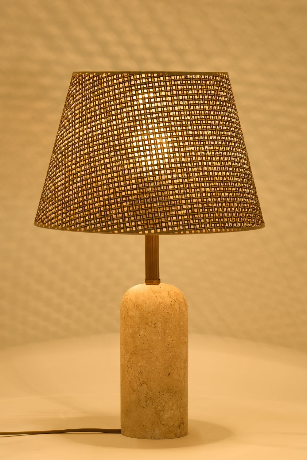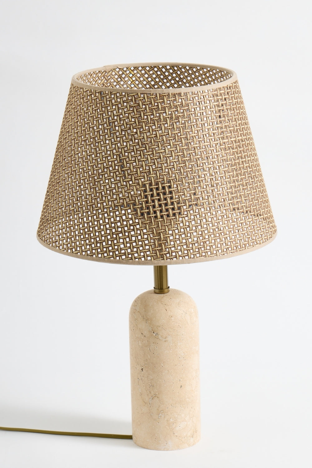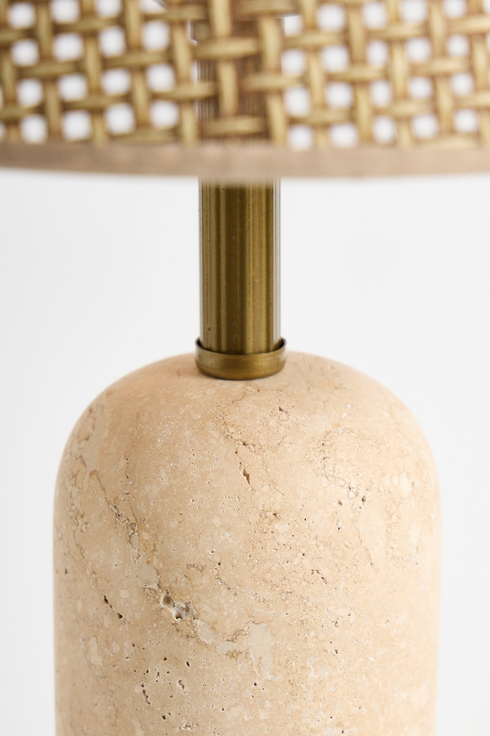 Malzeme: Traverten gövde, Hasır görünümlü jüt şapka, E27 Duy