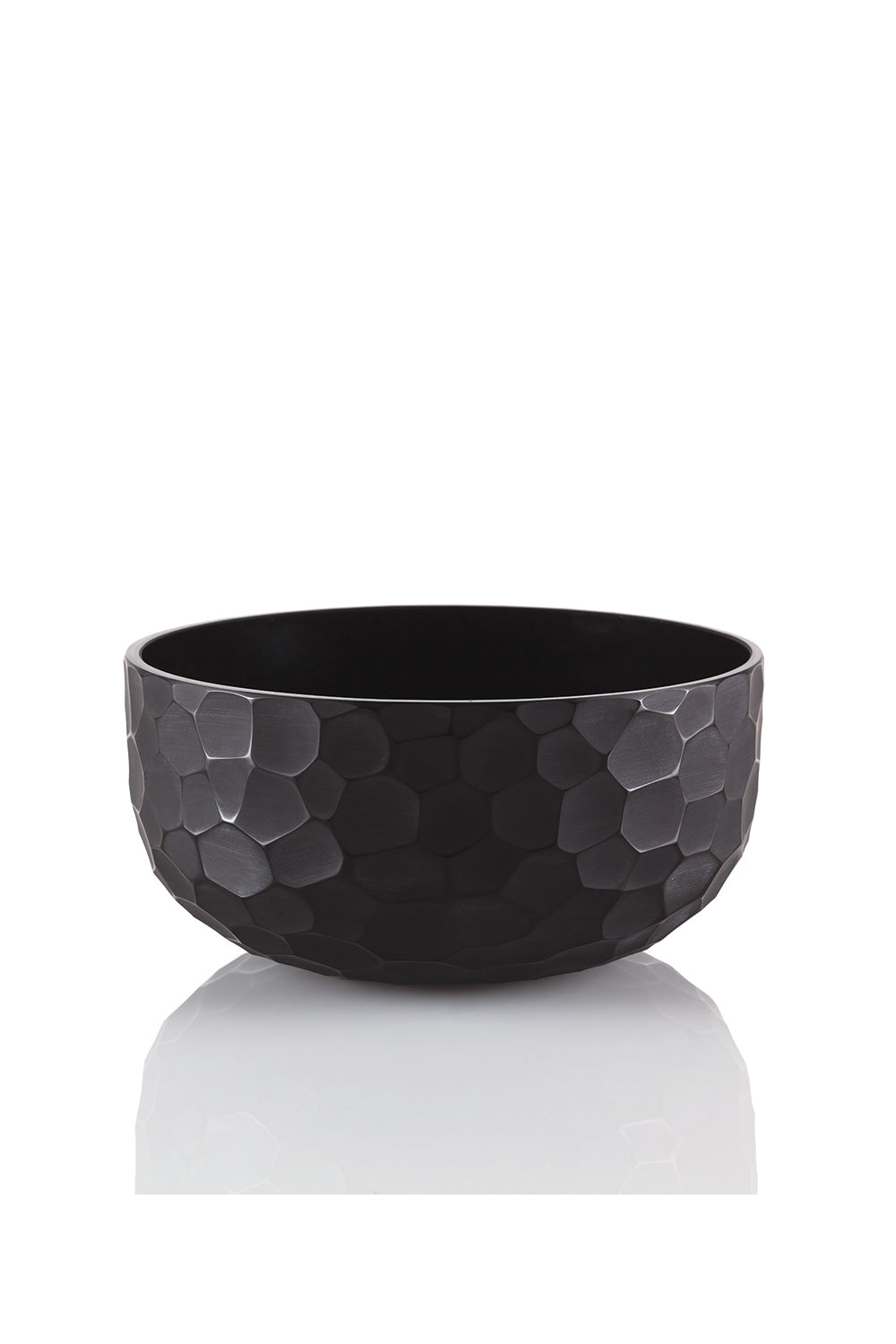 Sıcak cam üfleme tekniği ile üretilen, petek kesim dokusu ile özel tasarımlı, el yapımı dekoratif çanak.