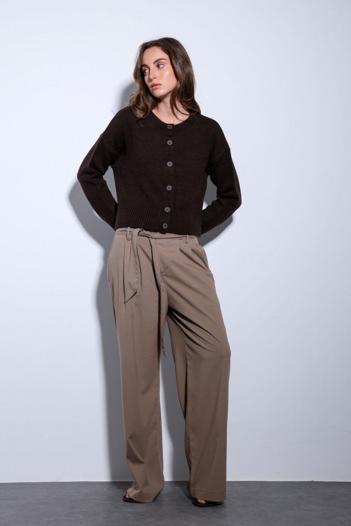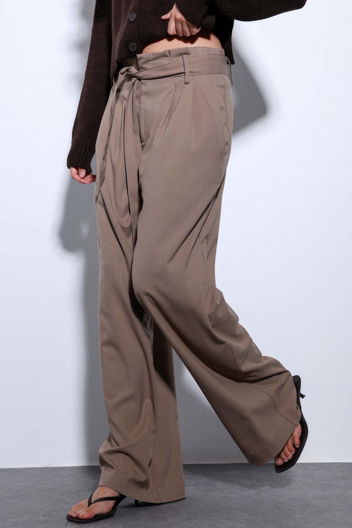 Vizon Kemerli Pileli Geniş Kadın Pantolon