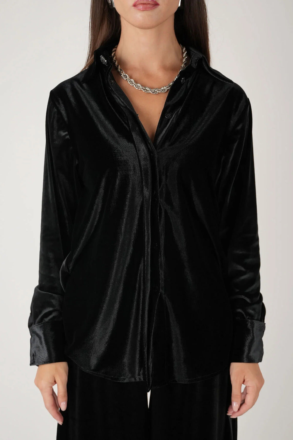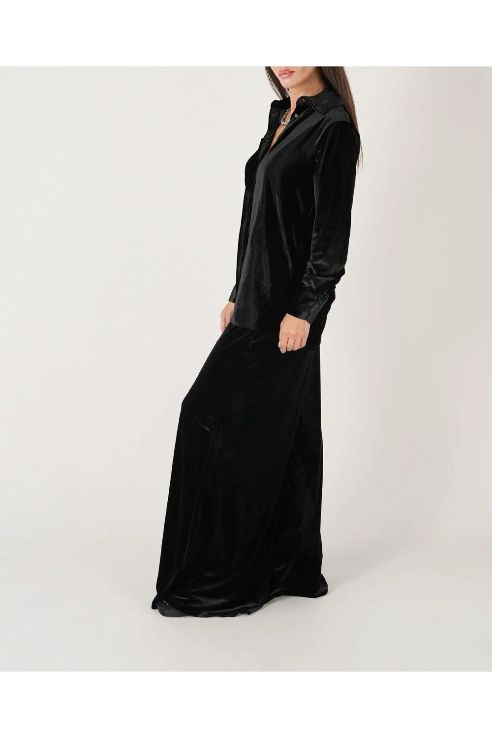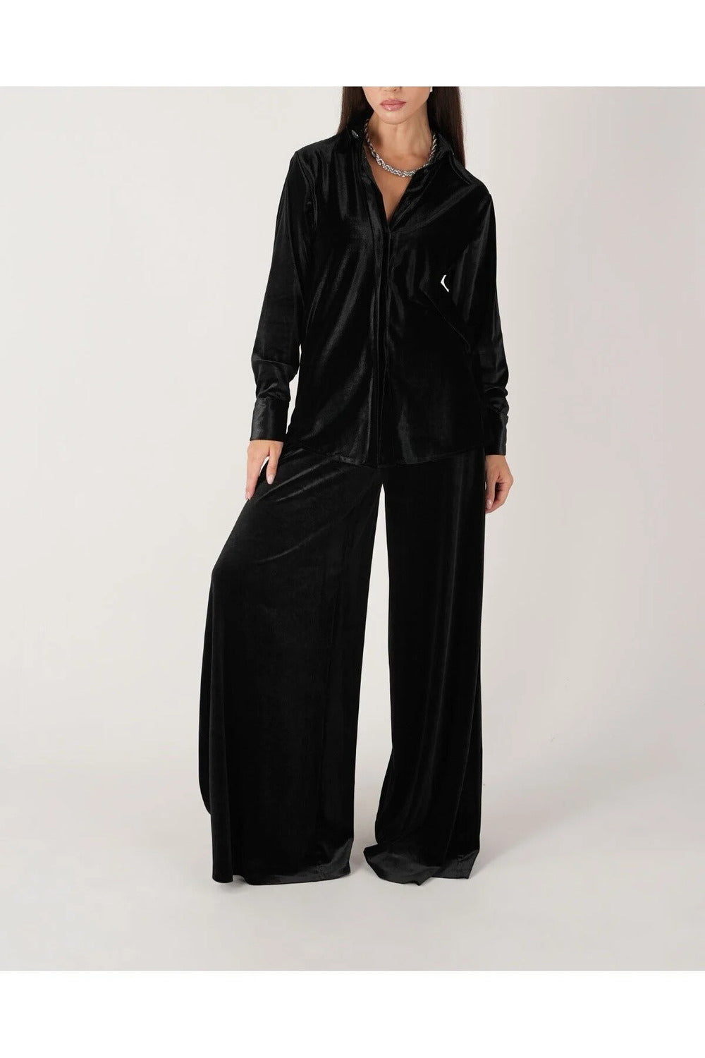 Regular Fit Gömlek & Geniş Paça Pantolon Alt&Üst Siyah Kadife Takım