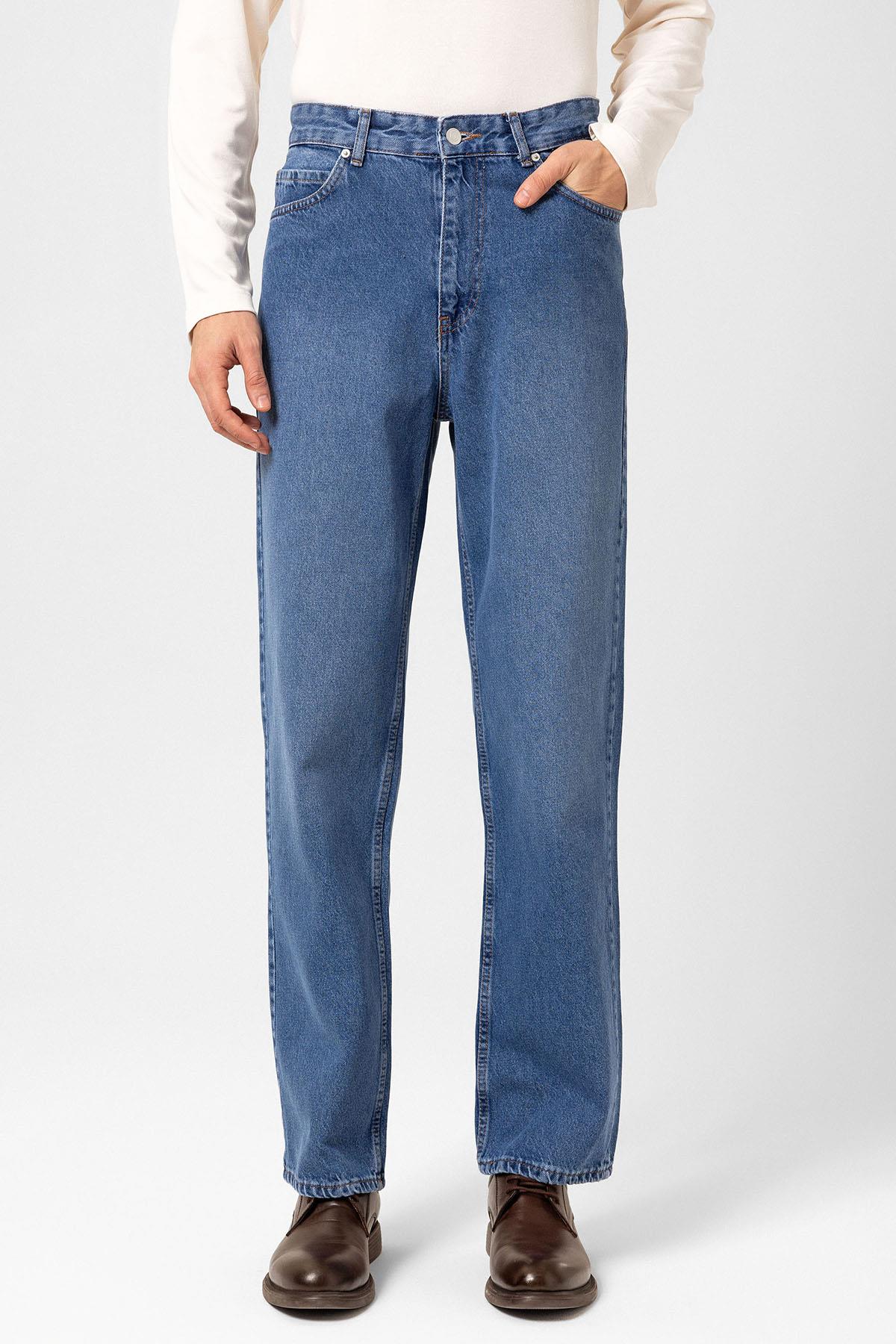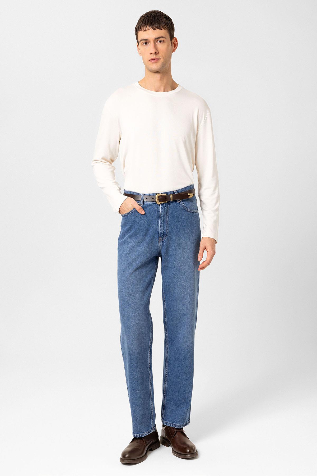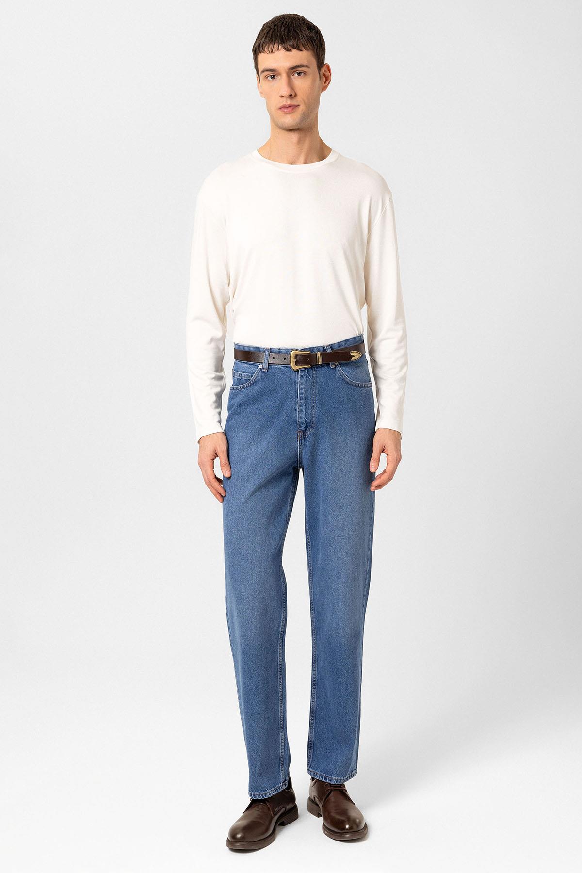 Açık Mavi Yüksek Bel Regular Fit Erkek Kot Pantolon