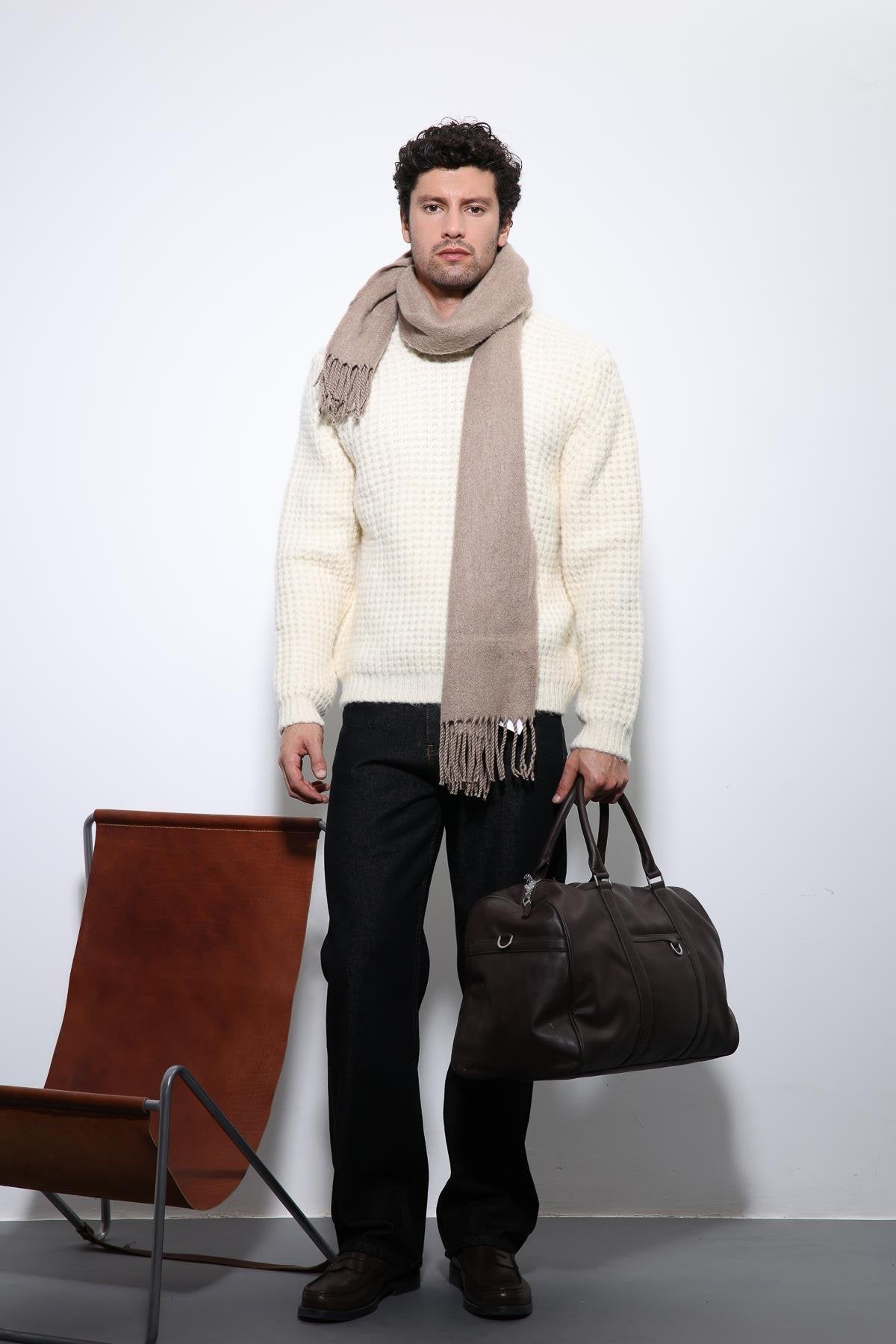 Bej Örme Dokulu Erkek Kazak