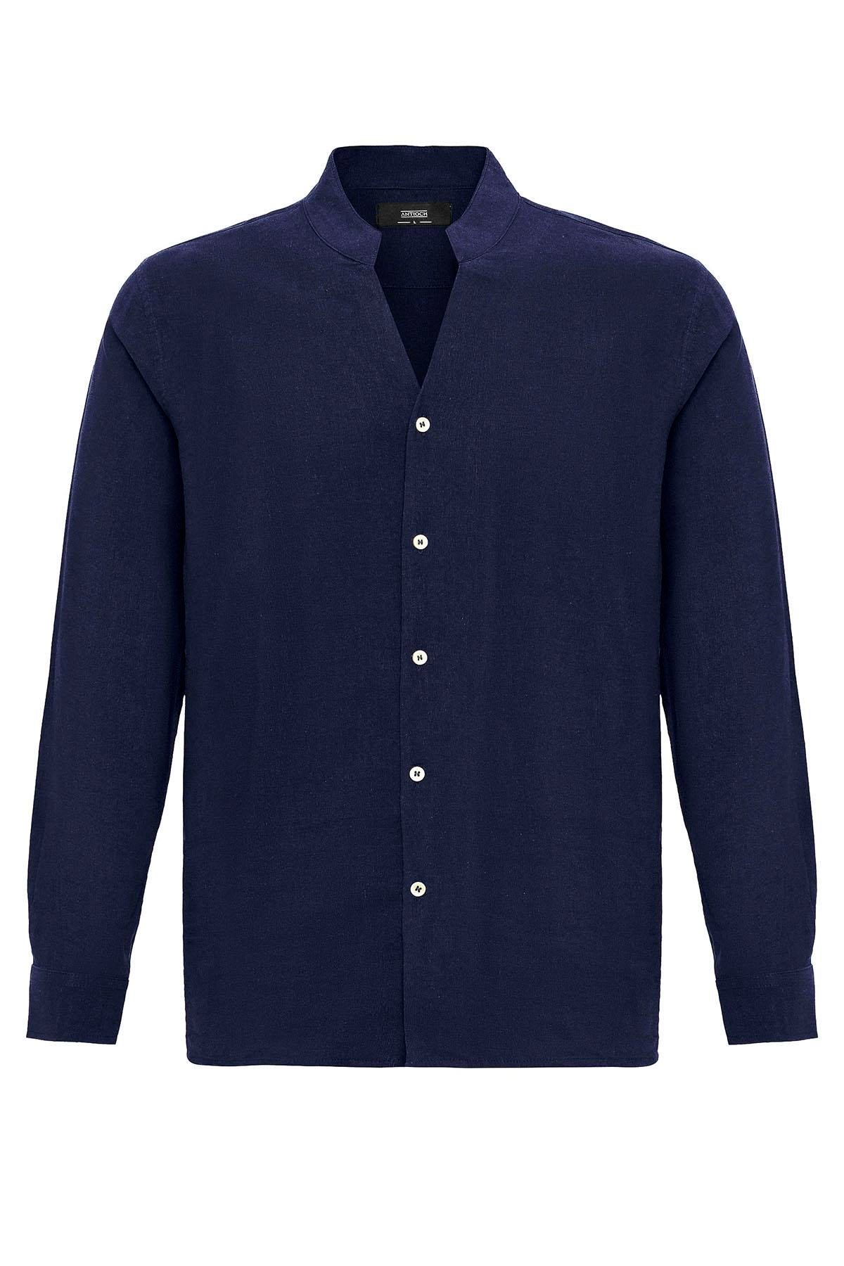 Lacivert Hakim Yaka Uzun Kollu Erkek Gömlek
