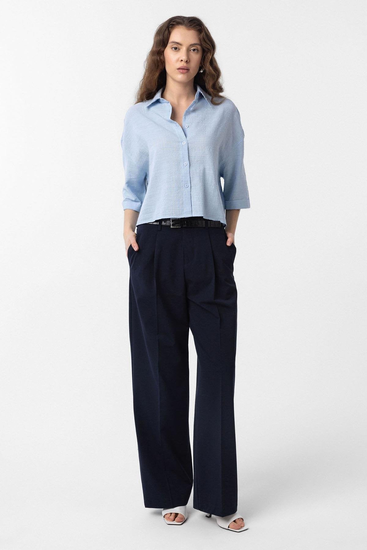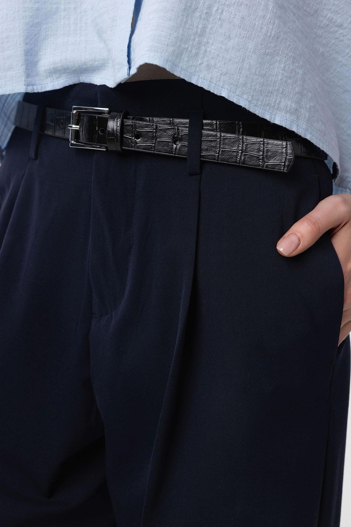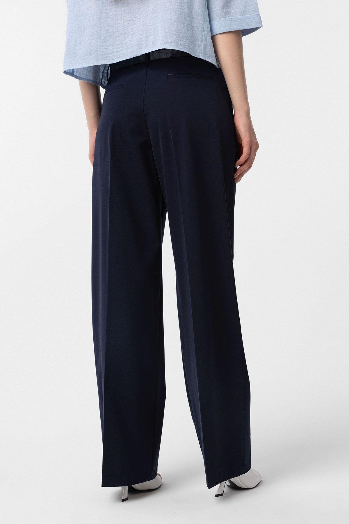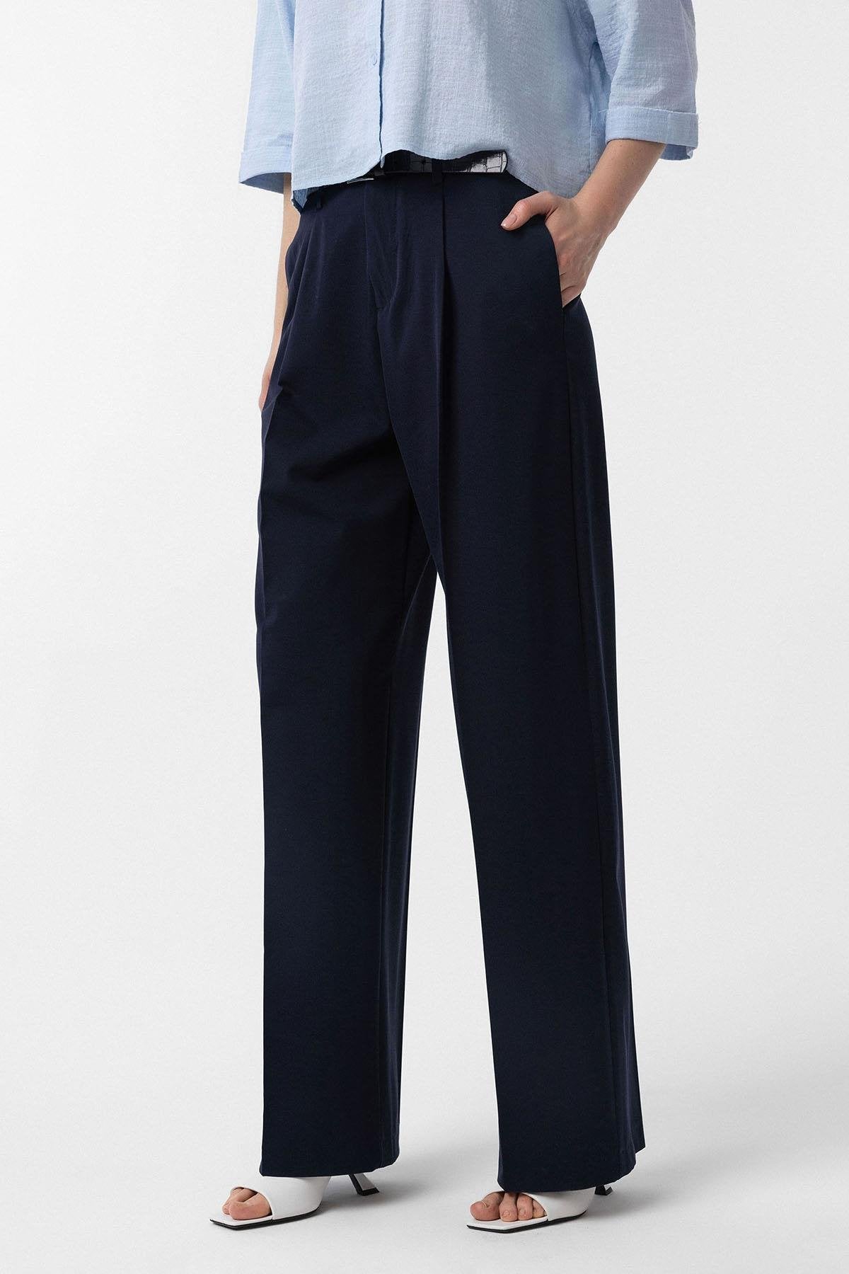 Lacivert Yüksek Bel Pilili Kadın Pantolon