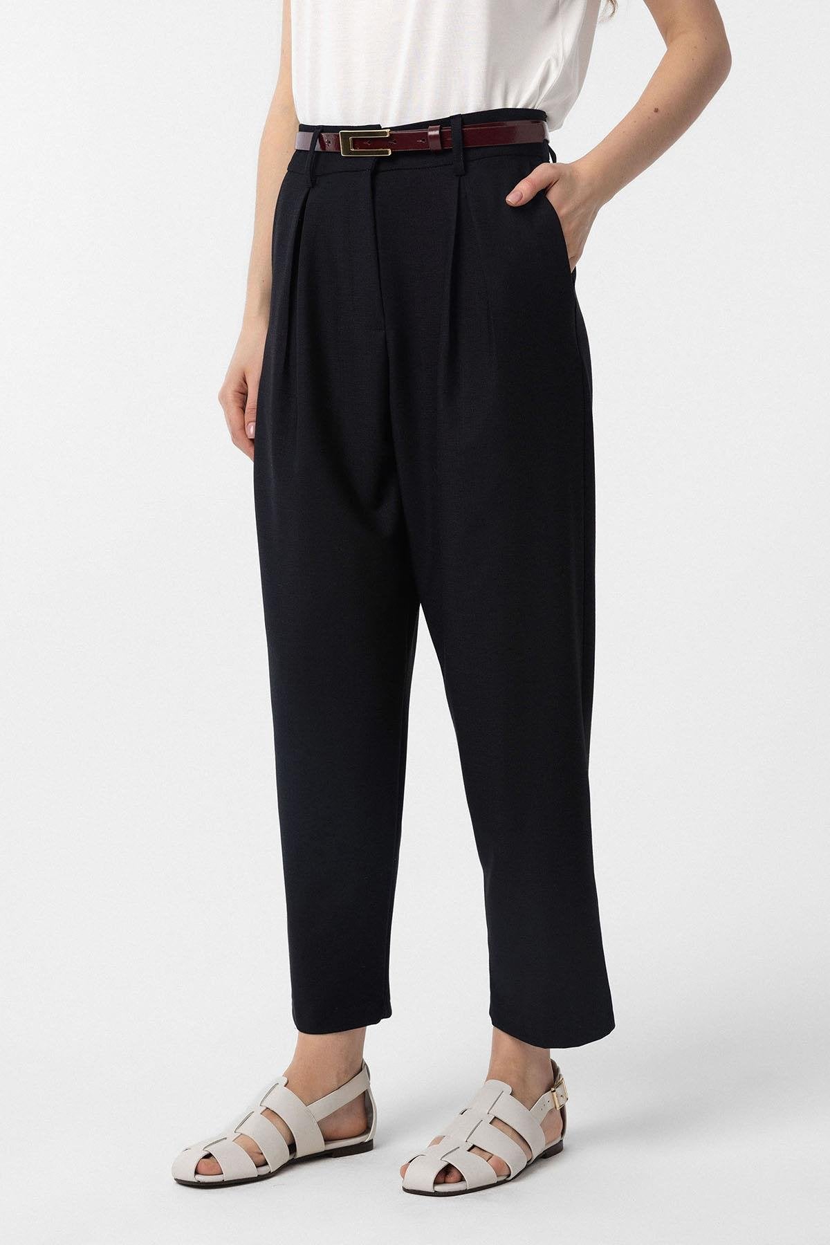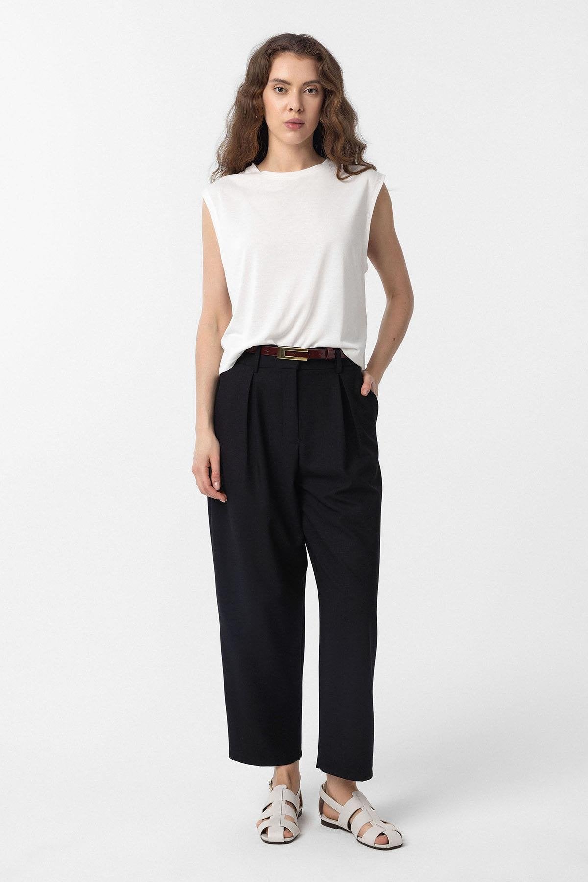Siyah Pilili Soft Bilek Boyu Kadın Pantolon