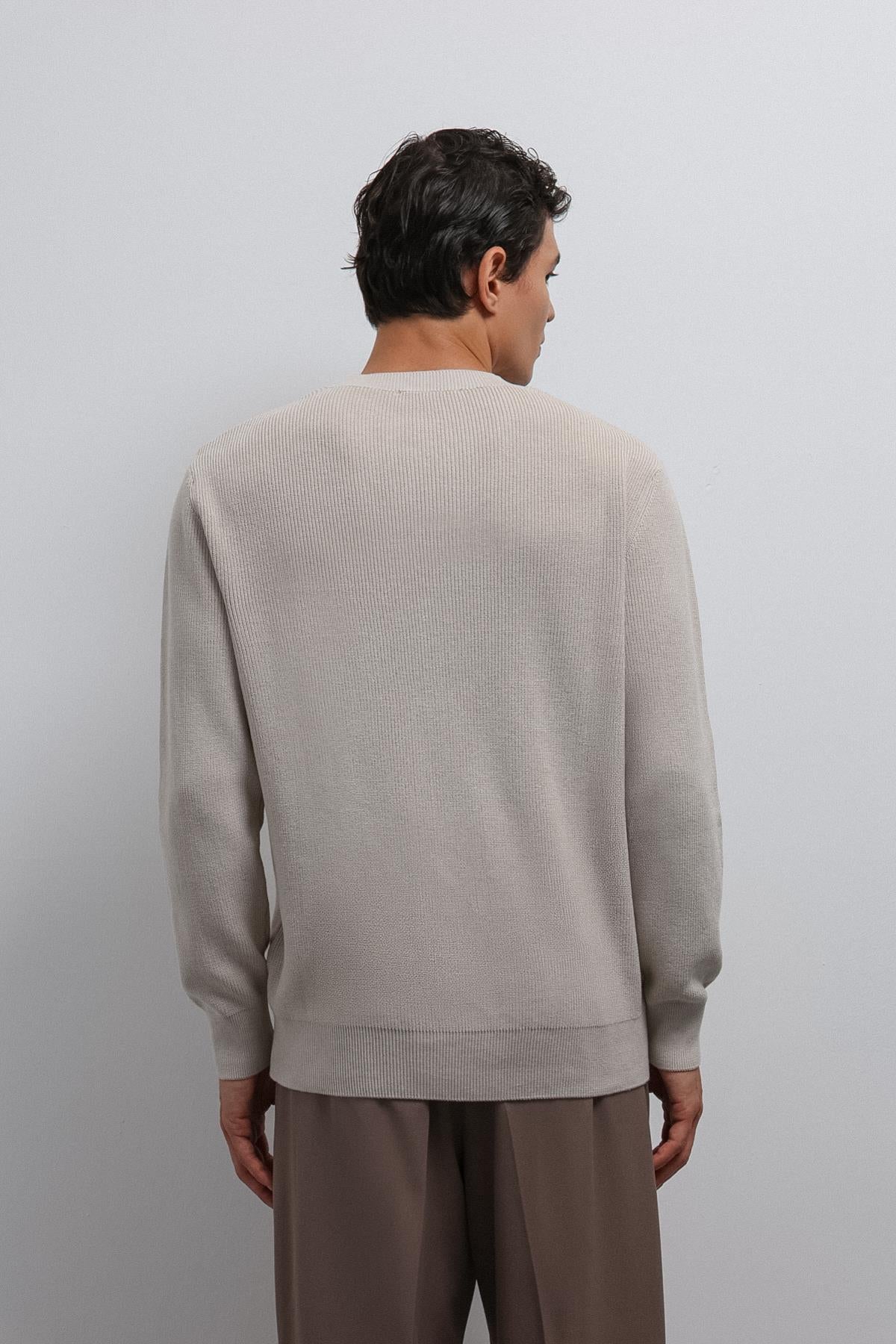Pamuk karışımlı yumuşak dokudan üretilmiş, uzun kollu bisiklet yaka erkek kazaktır. Günlük şehir stiline uyum sağlayan konforlu ve modern bir görünüm sunar. Farklı pantolon modelleriyle kolayca kombinlenebilir. Türkiye’de üretilmiştir.
