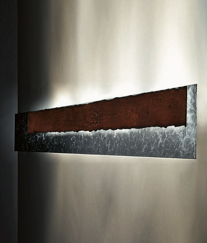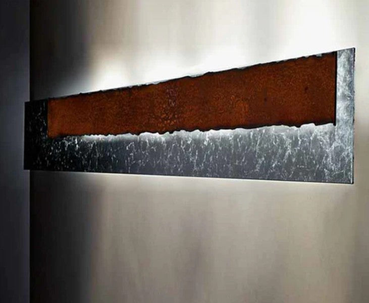 Ham metal dokusu ve katmanlı yüzeyiyle Piastra 1L Aplik, duvarda heykelsi bir etki yaratır. Işığı dolaylı olarak yayarak mekâna derinlik ve atmosfer katar. Endüstriyel çizgileri modern bir yorumla buluşturan bu tasarım, sade ama güçlü bir dekoratif vurgu sunar.