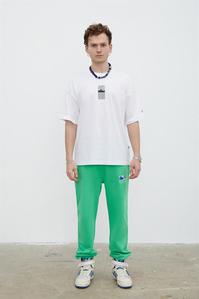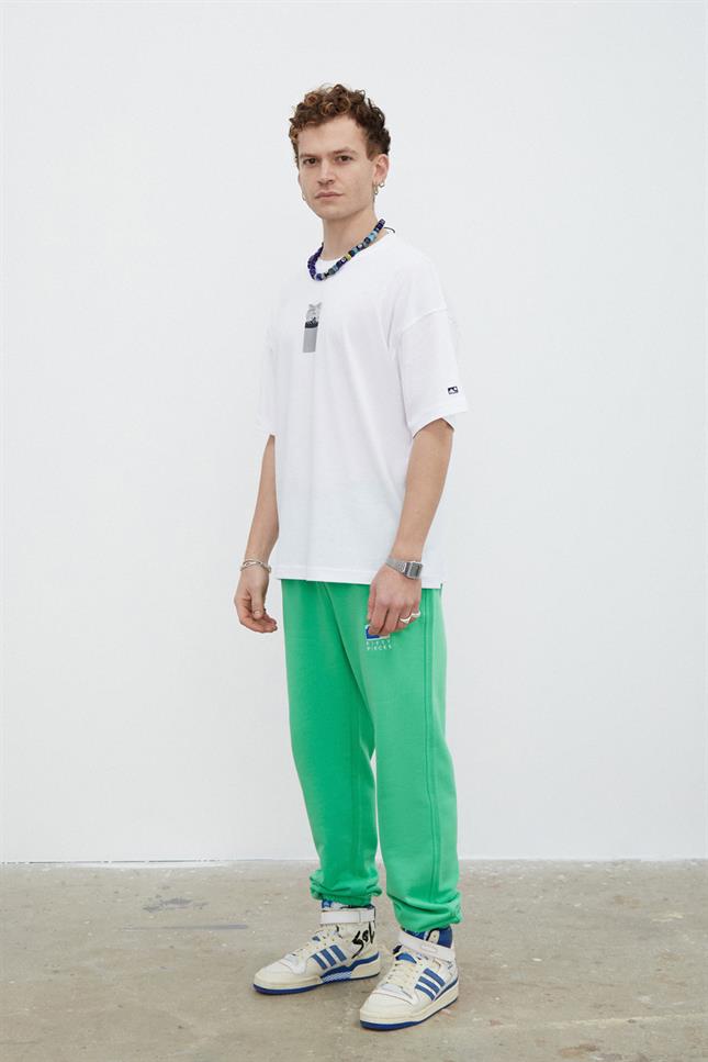 Beyaz Sırt Baskılı Düşük Omuzlu T-Shirt