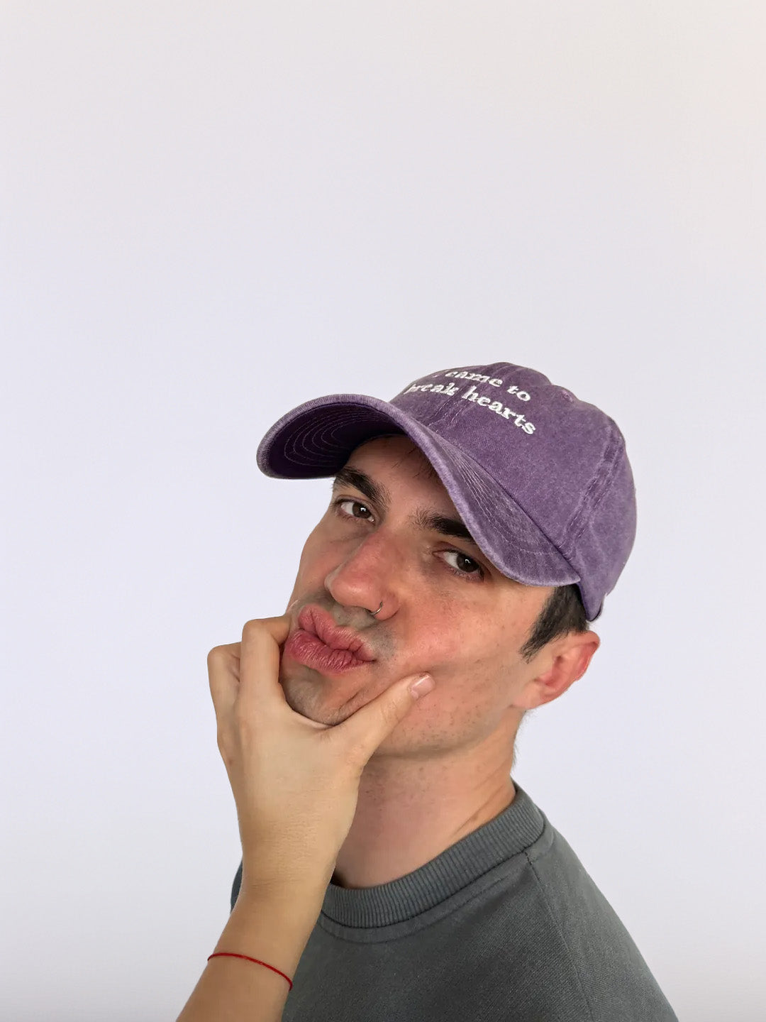 "I came to break hearts" embroidered cap. One size. Size can be adjusted with the clasp at the back. Made of cotton fabric.