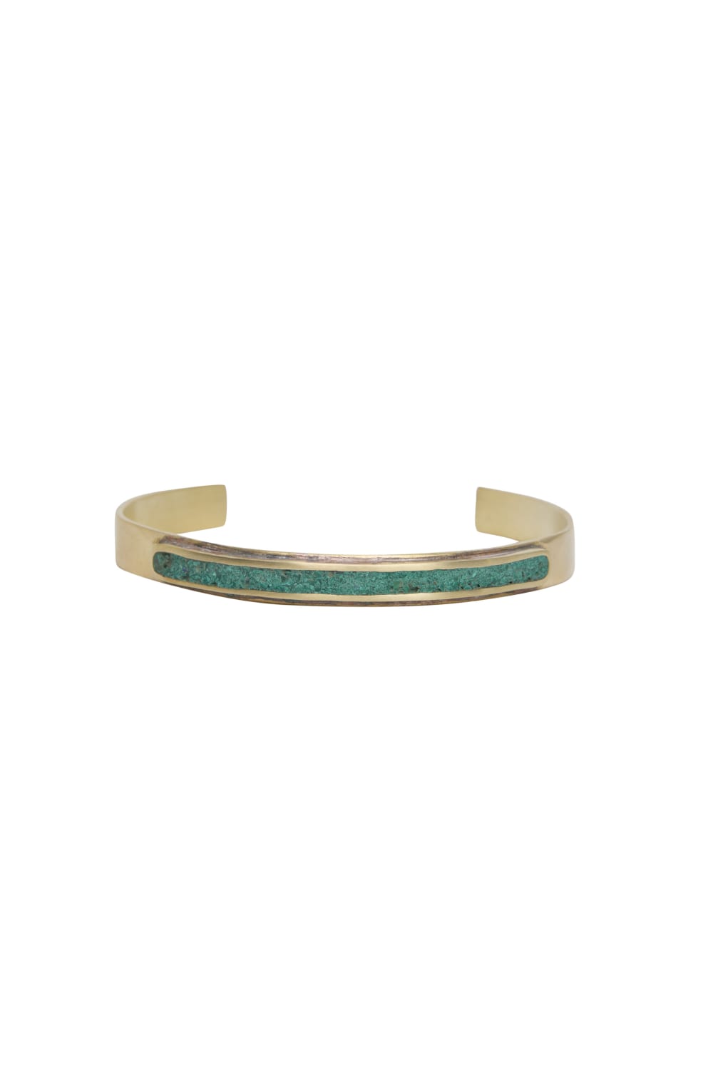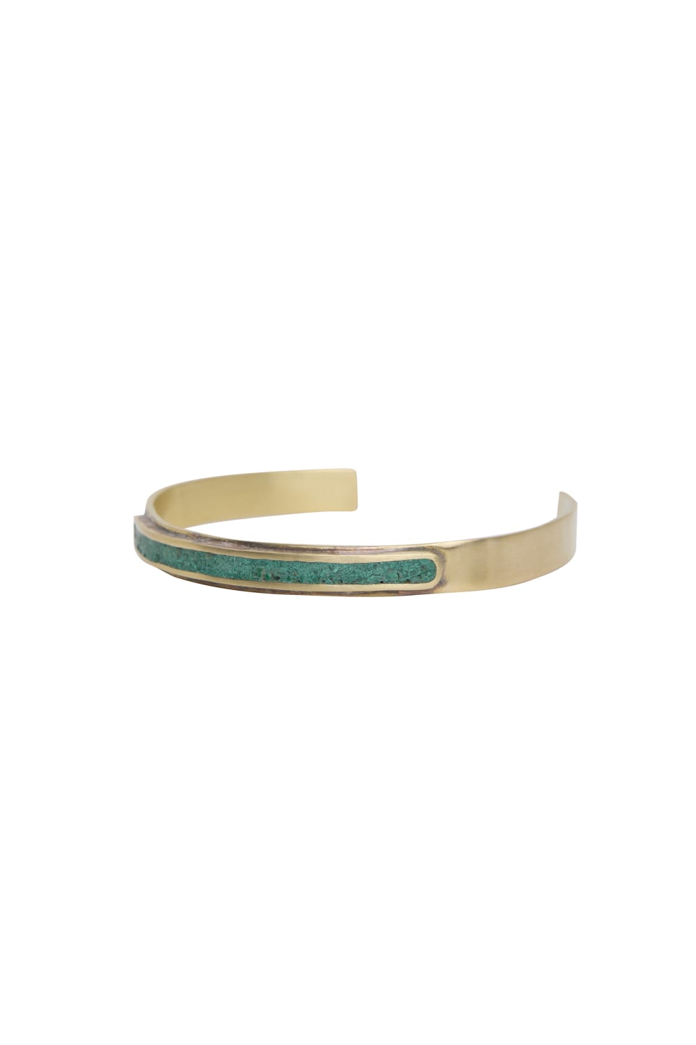 Yarı değerli Malahit kakma, el yapımı pirinç bileklik