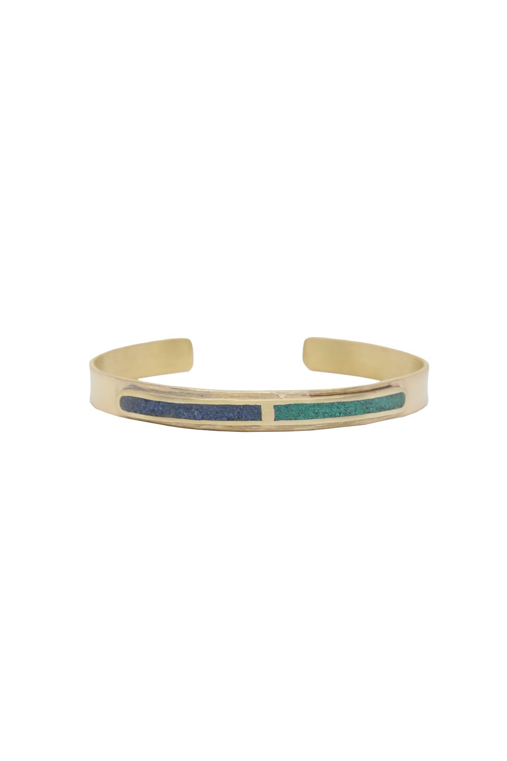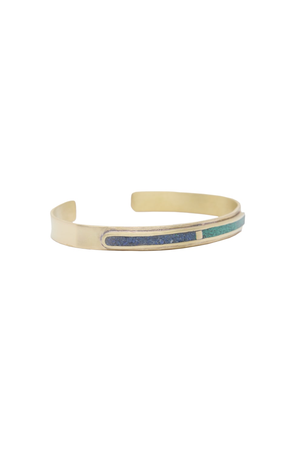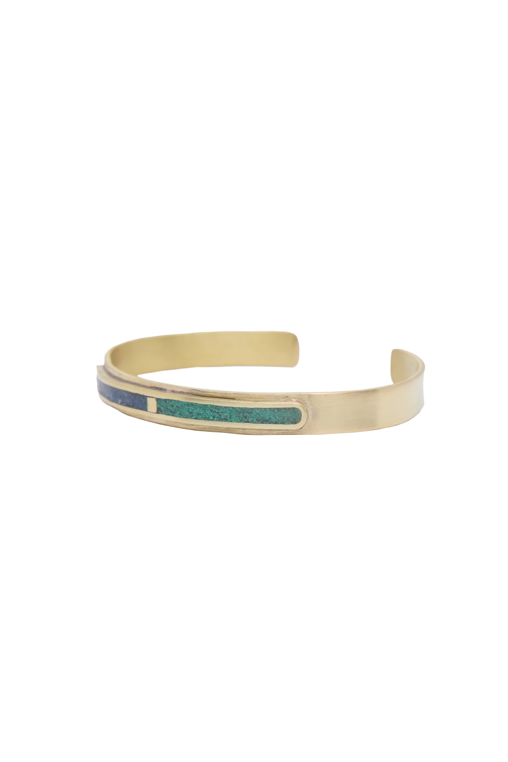 Lapis Lazuli ve Malahit kakma, el yapımı pirinç bileklik.