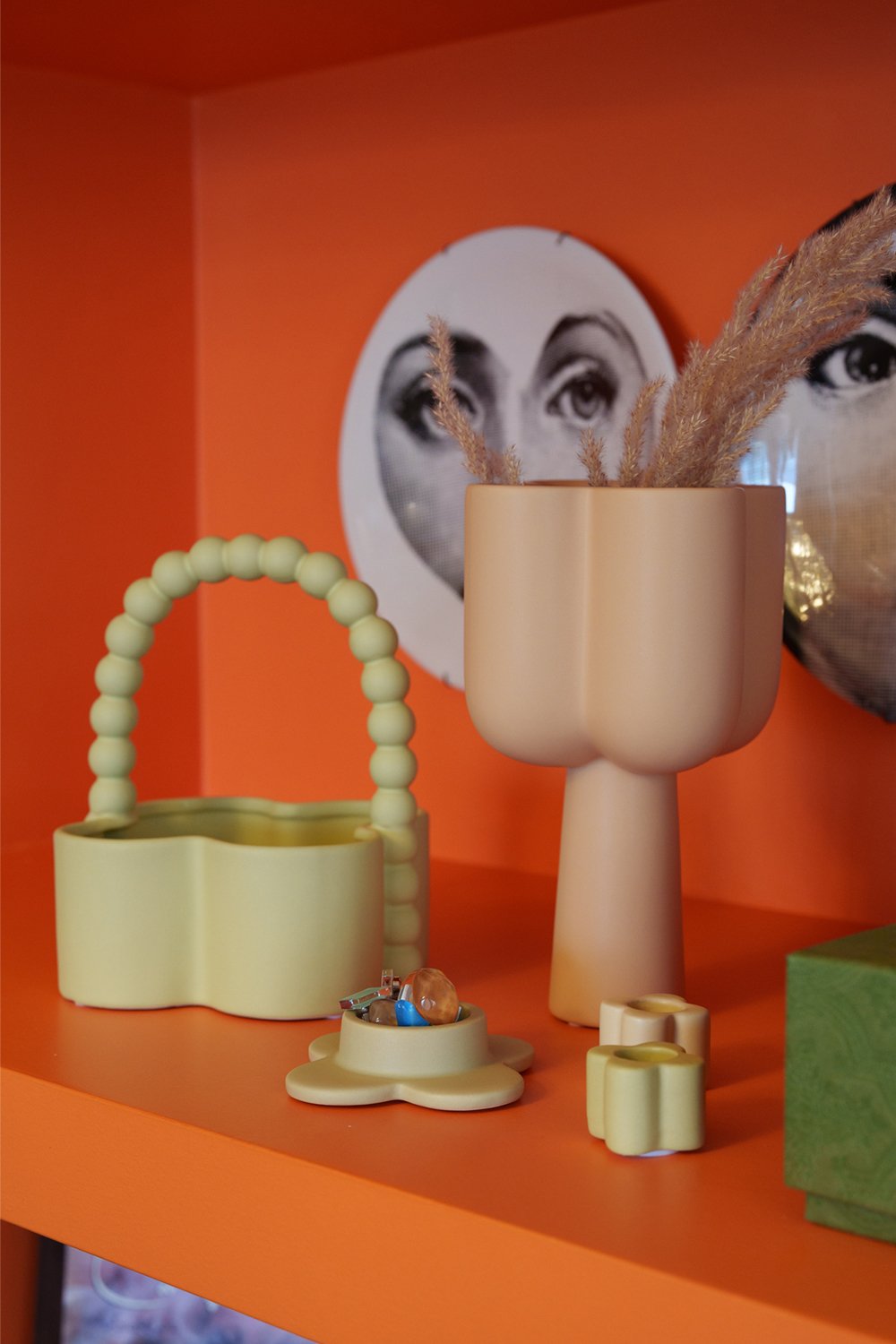 Dekoratif ve fonksiyonel olarak kullanılabilir, çiçeklik, mumluk ya da meyve sepeti gibi farklı alanlara uyum sağlar