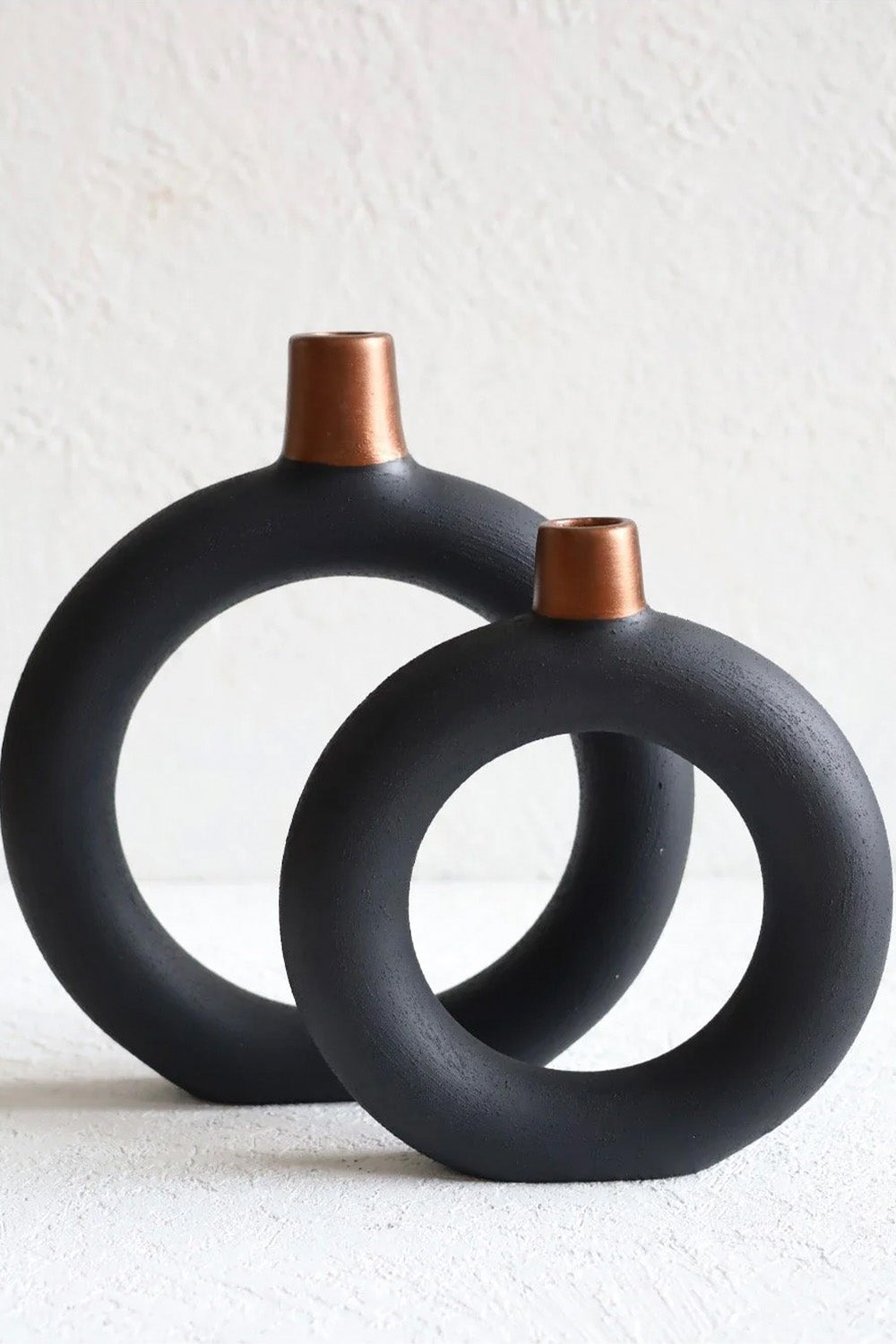 İkili Siyah Ring Vazo Evinizin dekorasyonuna zarif bir dokunuş katacak olan İkili Siyah Ring Vazo, estetik ve şıklığı bir arada sunar.