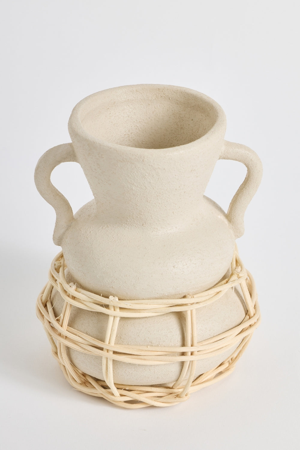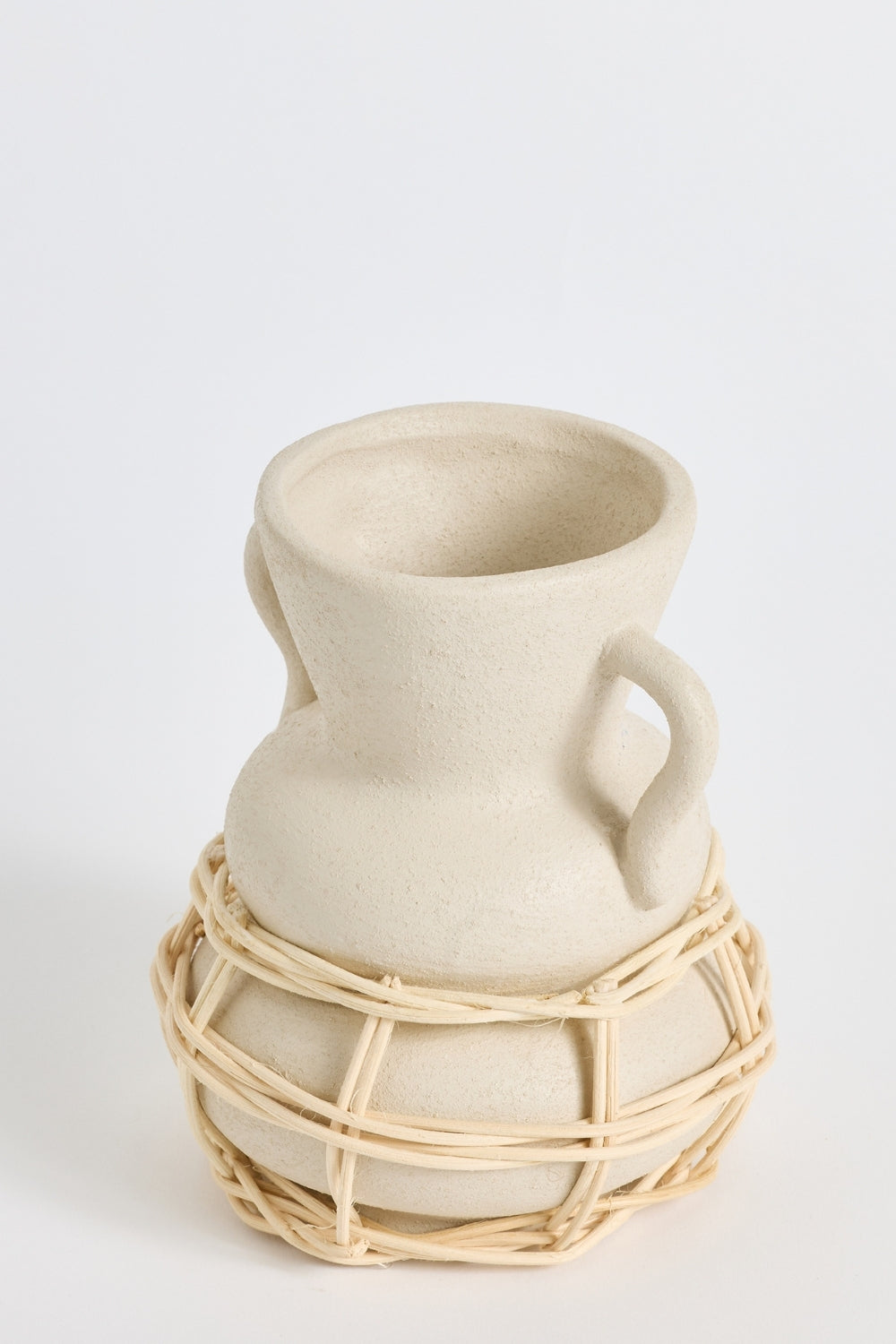 Çömlek Doğal Hasır Örgülü Terakota Vazo