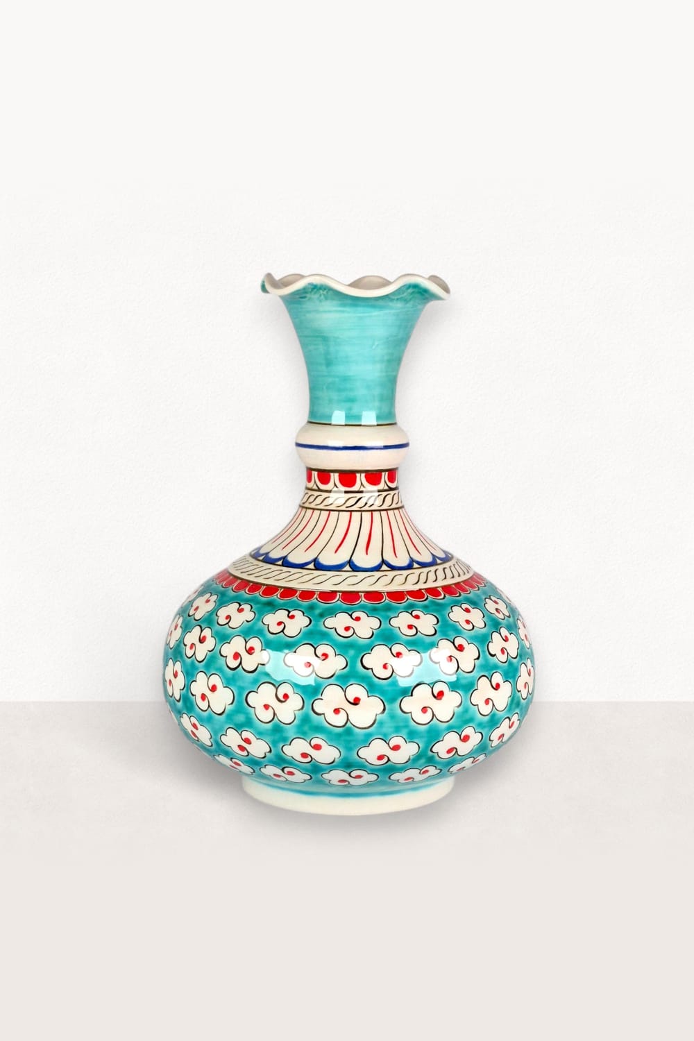 "Bulutlu Turkuaz Çini Vazo", bu görkemli geleneğin modern bir yorumu olarak, hem tarihî mirası hem de görsel zarafeti günümüze taşıyor.