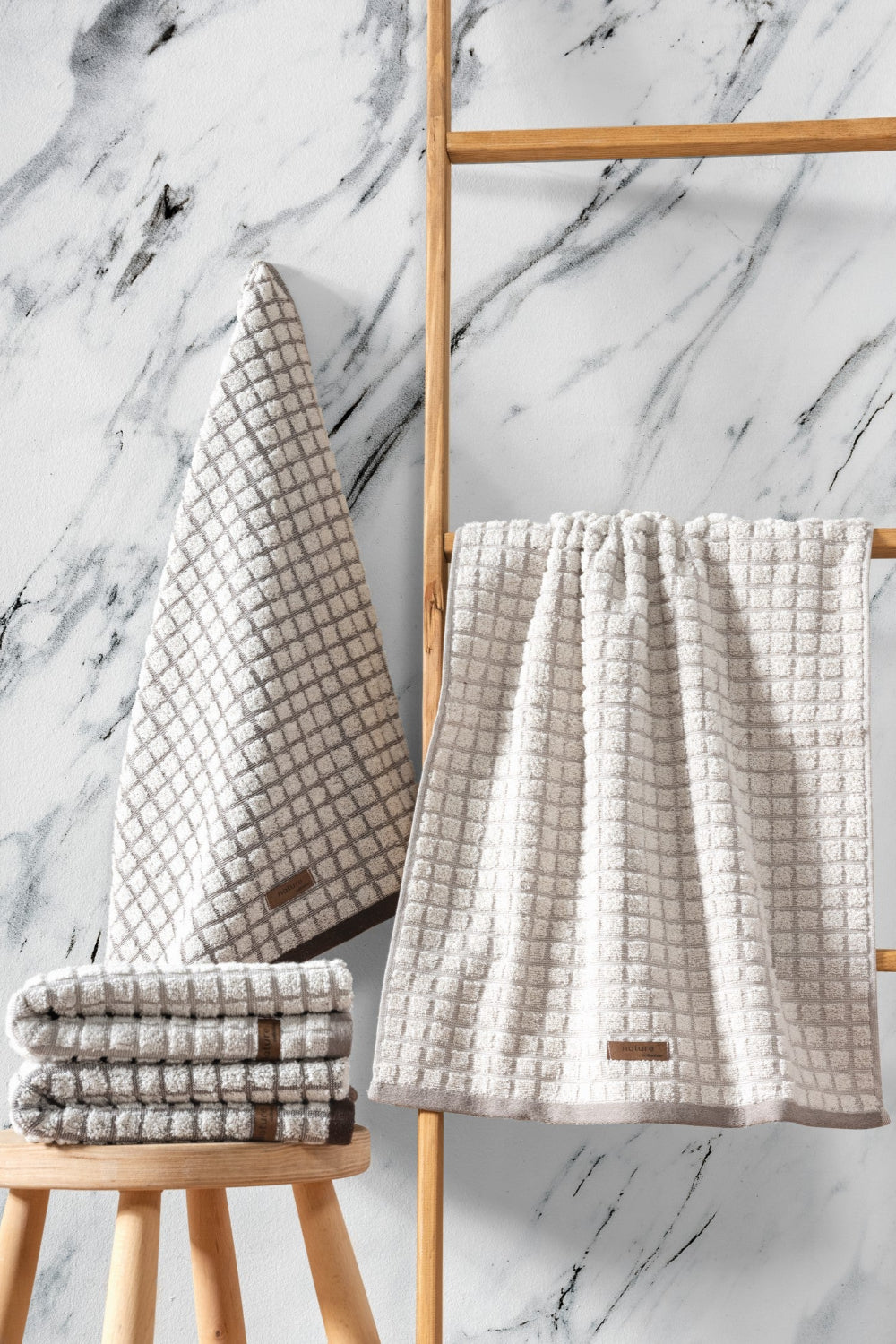 4'lü Jakarlı Havlu Seti Nature Kahve Bej 50x90