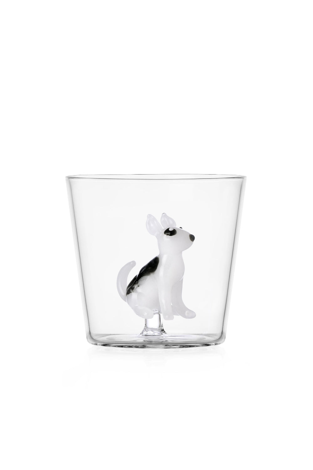 Dogs Koleksiyonu’na ait bu cam bardak, iç kısmında el işçiliğiyle oluşturulmuş Bull Terrier figürüyle dikkat çeker. Sevimli ve karakteristik detaylara sahip bu tasarım, hayvan severler için hem anlamlı hem de eğlenceli bir sunum parçasıdır. Şeffaf camın içinde öne çıkan figür, günlük kullanımı sıradanlıktan çıkararak sofralara neşe ve stil katar.