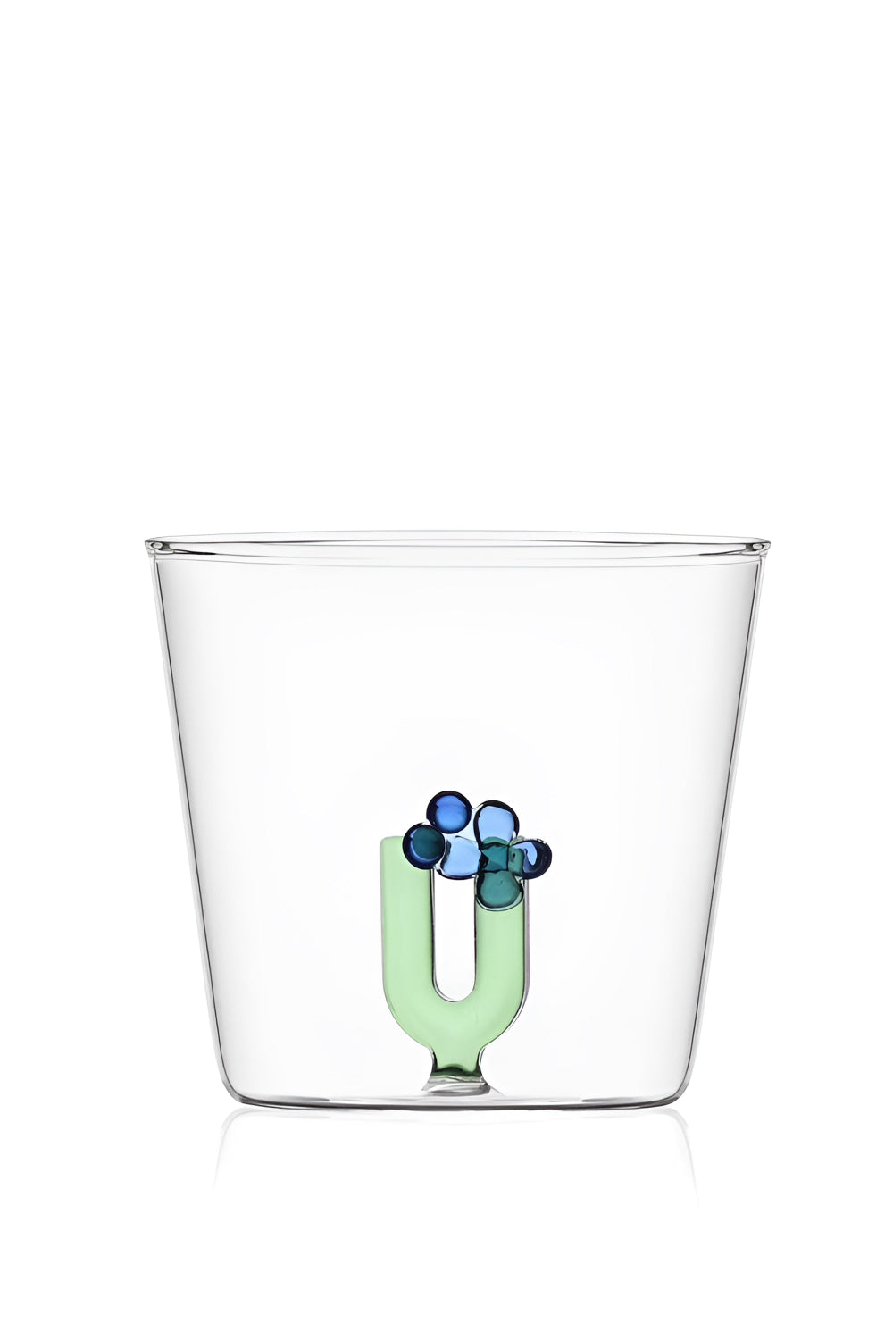 Bloom Alphabet koleksiyonundan yeşil renkli U harf figürlü cam su bardağı.