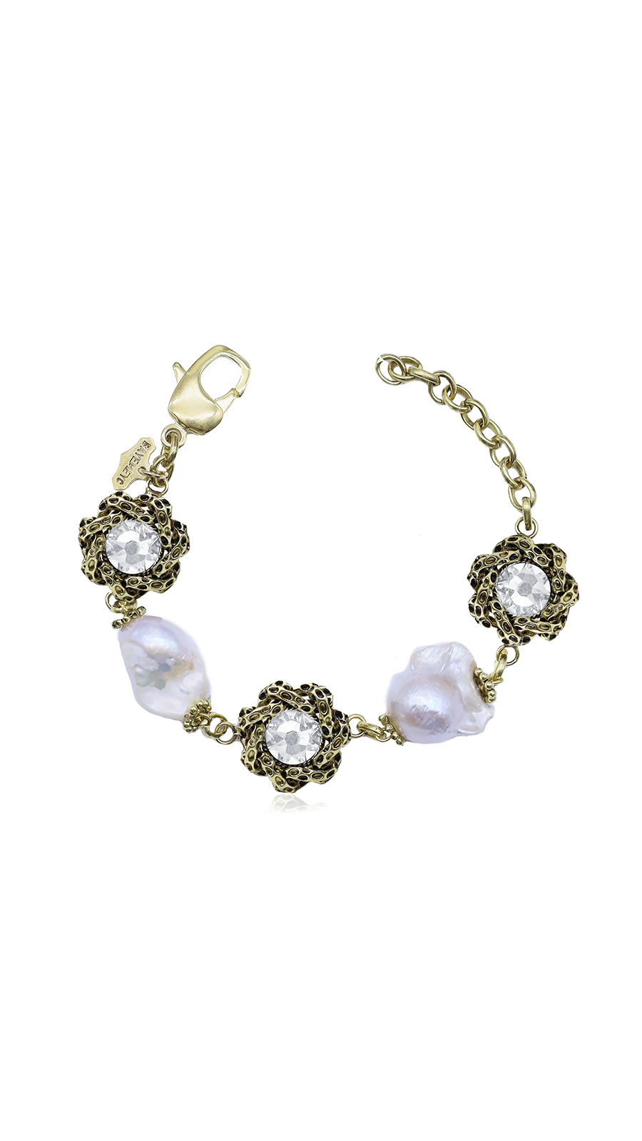 MateryalBarok inci, 22 ayar altın kaplama pirinç, kristal taş