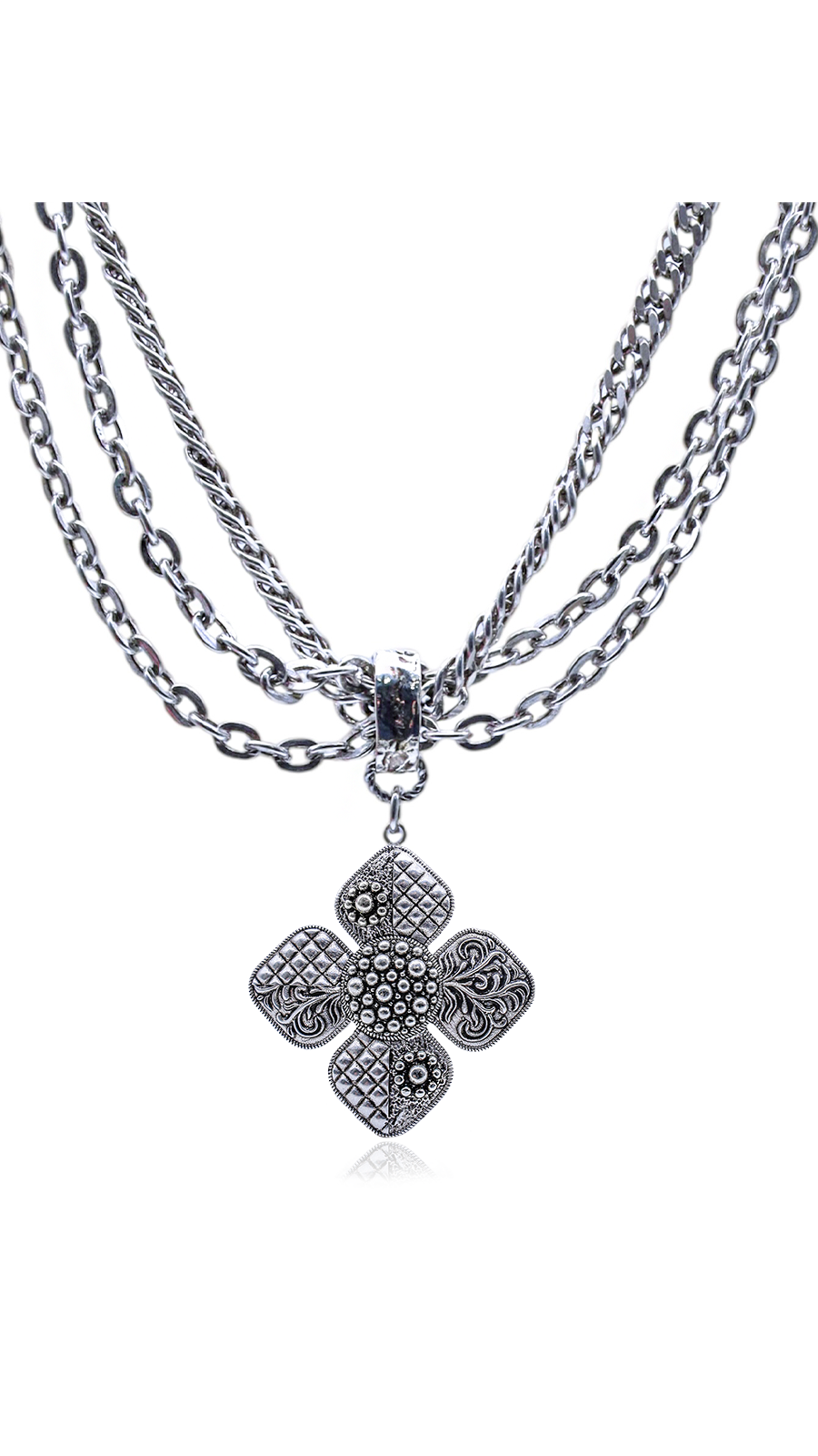 GIARDINO ÇOKLU ZİNCİR KOLYE, eskitme gümüşün çarpıcı dokusu, geçmişin izlerini taşırken modern dünyayla kusursuz bir bağ kuruyor. GIARDINO ÇOKLU ZİNCİR KOLYE, iki farklı formdaki zincirin karmaşık ama dengeli birlikteliğiyle tasarlandı. Kendi yolunu çizen, kalıplara sığmayan ve her detayında cesareti barındıran bir duruş...