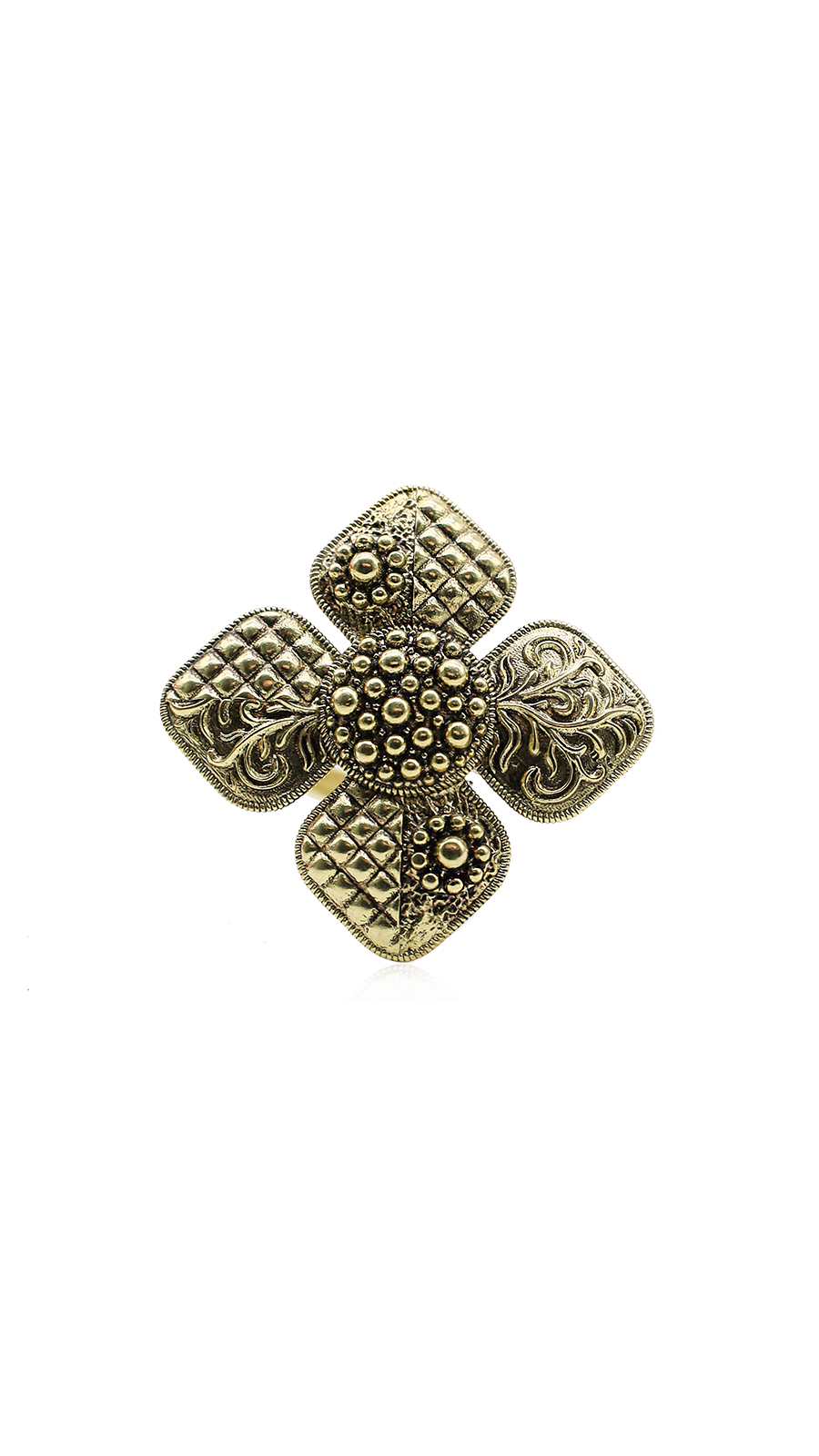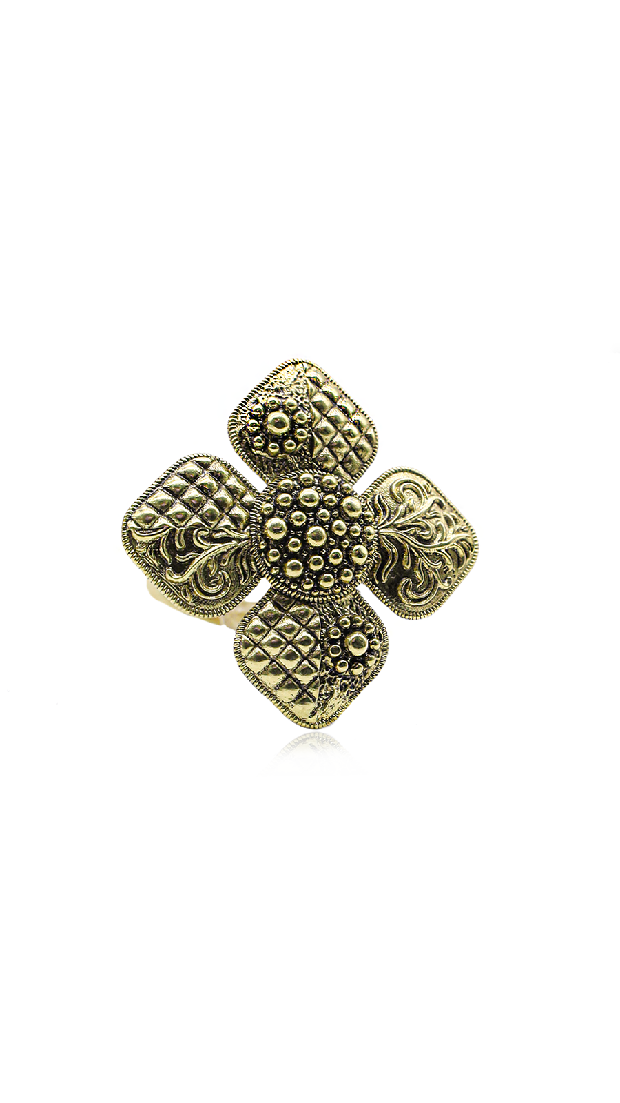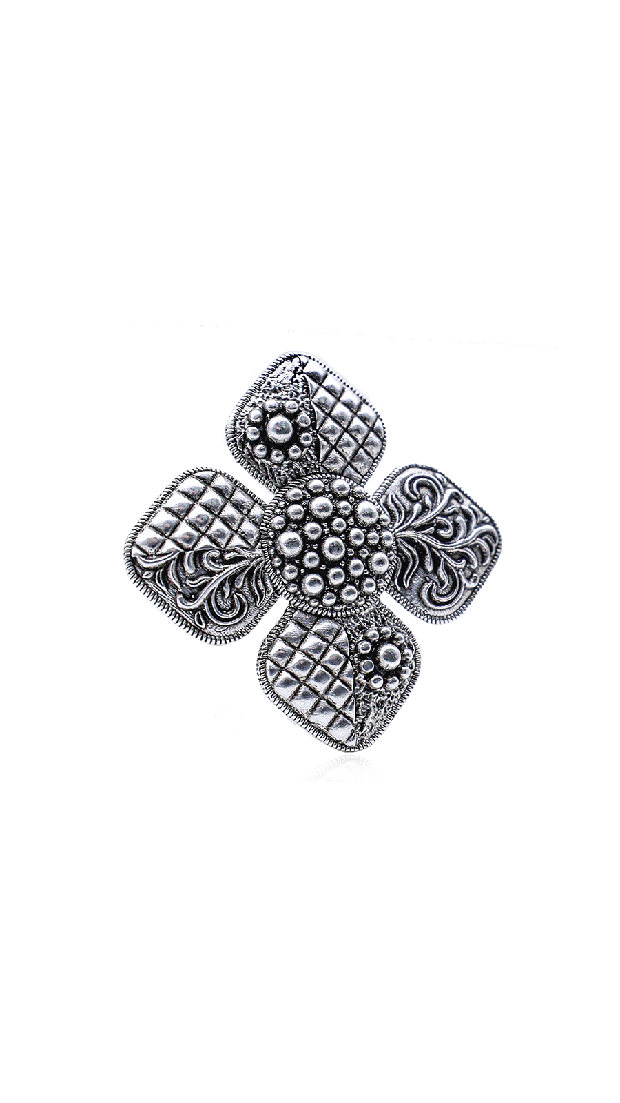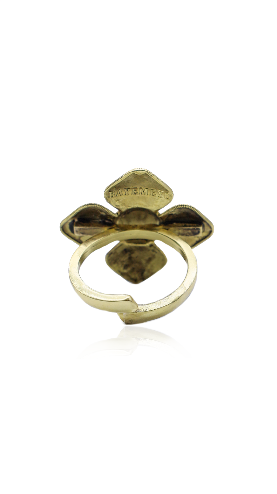 Yonca formunda tasarlanan yüzüğün her bir köşesi, benzersiz dokular ve desenlerle hayat bulurken, merkezdeki ince işçilik ile göz kamaştırır. Altın eskitme ve gümüş eskitme tonları, hem güçlü bir duruş sergiler hem de şıklığınızı tamamlar. RINCON DEL CIELO YÜZÜK, sadece bir yüzük değil, bir sanat eseri ve stil ifadesidir. RINCON DEL CIELO YÜZÜK takan herkese zarafetle birlikte eşsiz bir hikaye sunar.