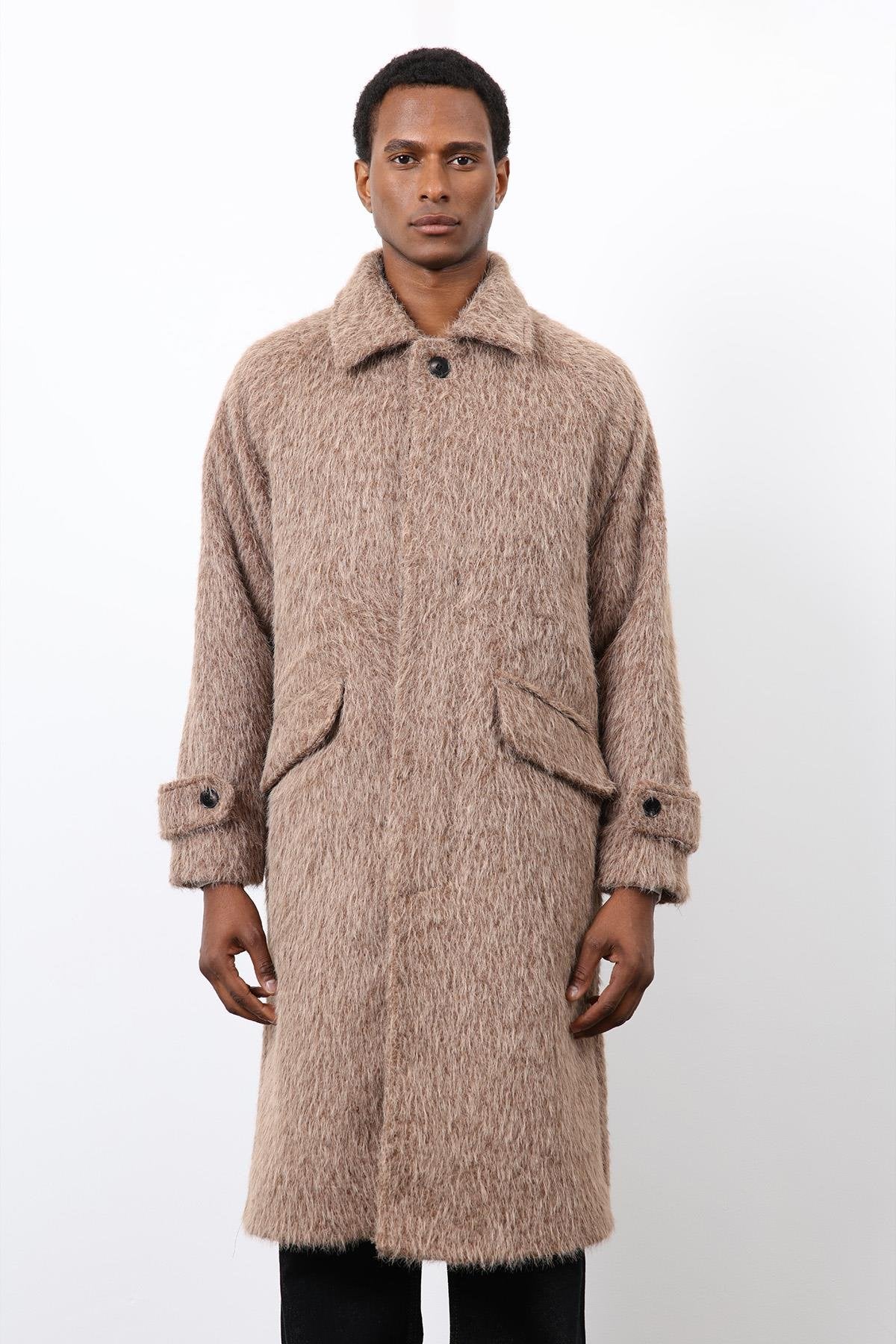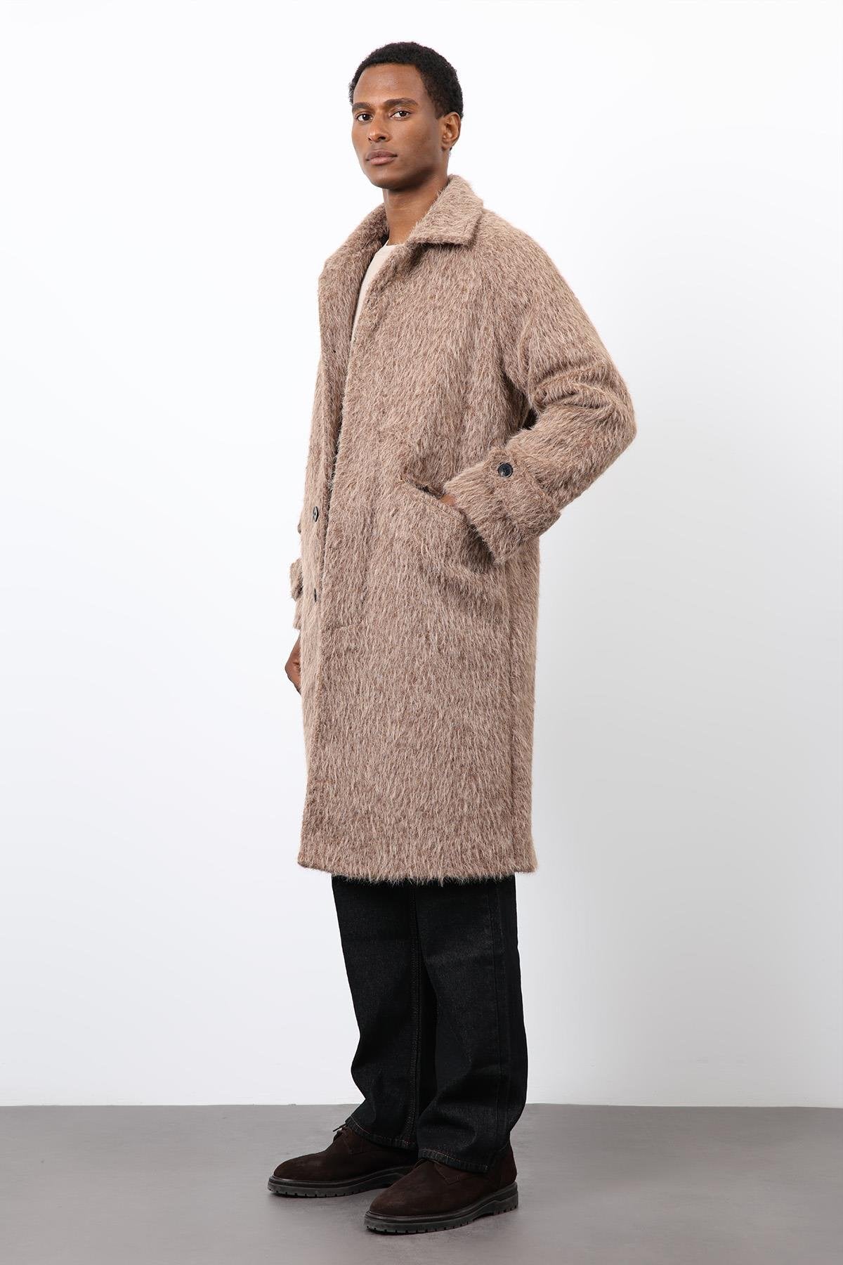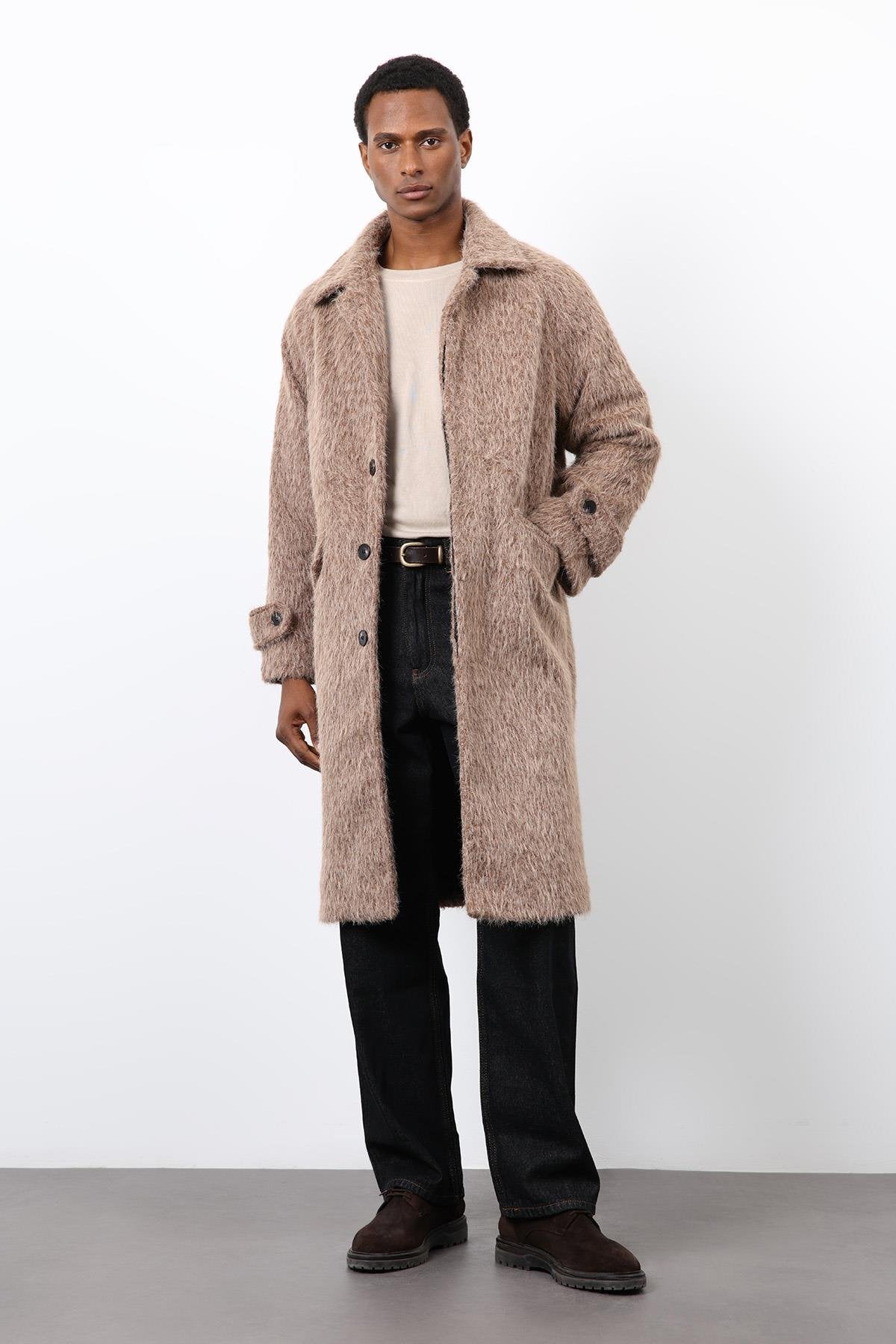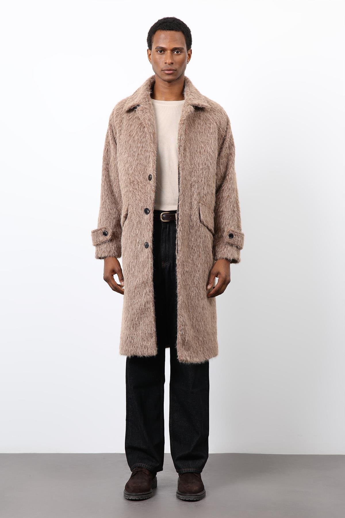 Doğal ve sıcak açık kahve tonu ile öne çıkan Açık Kahve Suni Kürk Erkek Kaban, kış stiline sofistike ama rahat bir karakter kazandırır. Relax fit kalıbı sayesinde konforlu bir kullanım sunarken, uzun formu soğuk havalara karşı etkili koruma sağlar. Ön yüzeyde yer alan düğme kapama detayı, kabanın sade ve zamansız çizgisini güçlendirir.