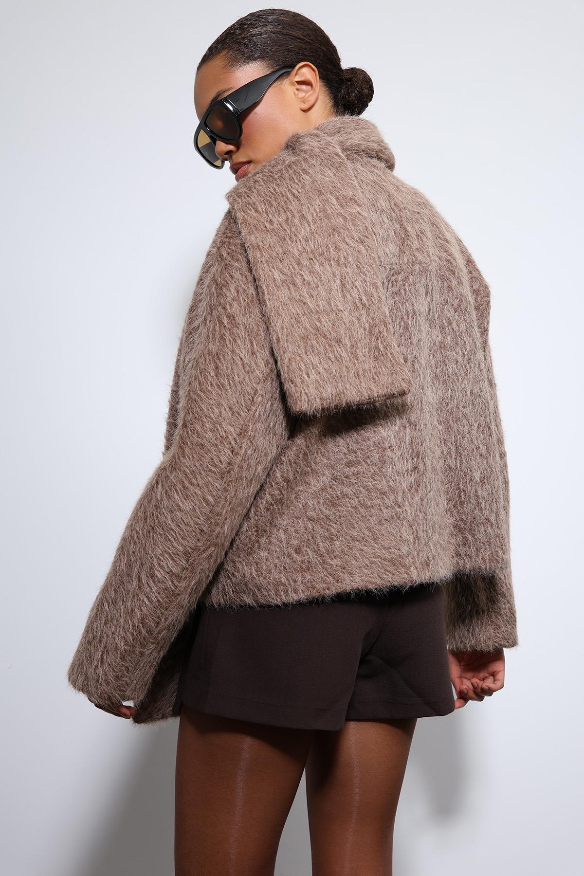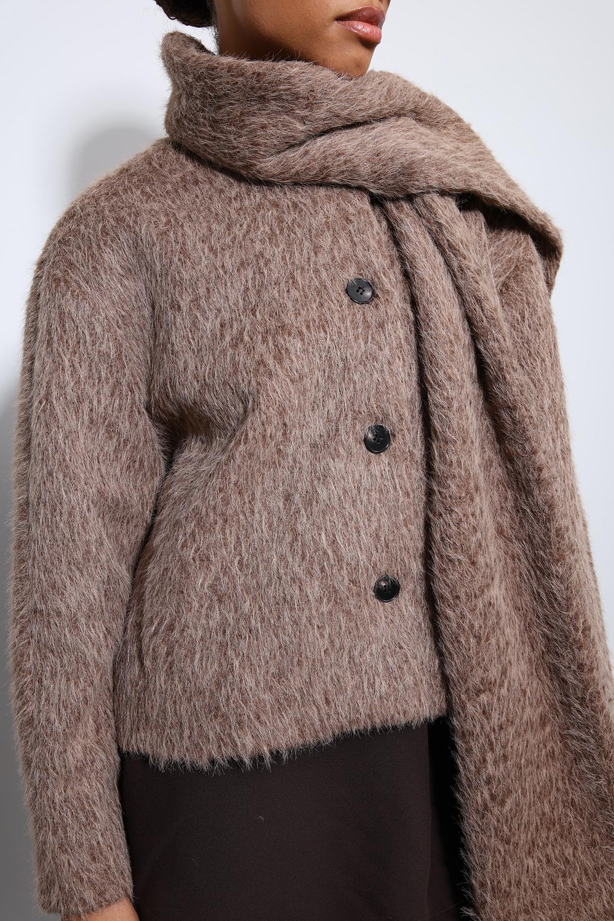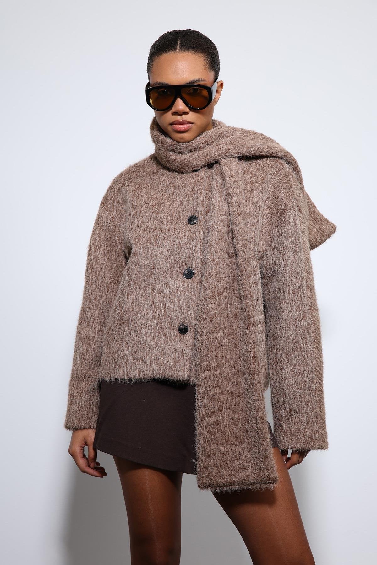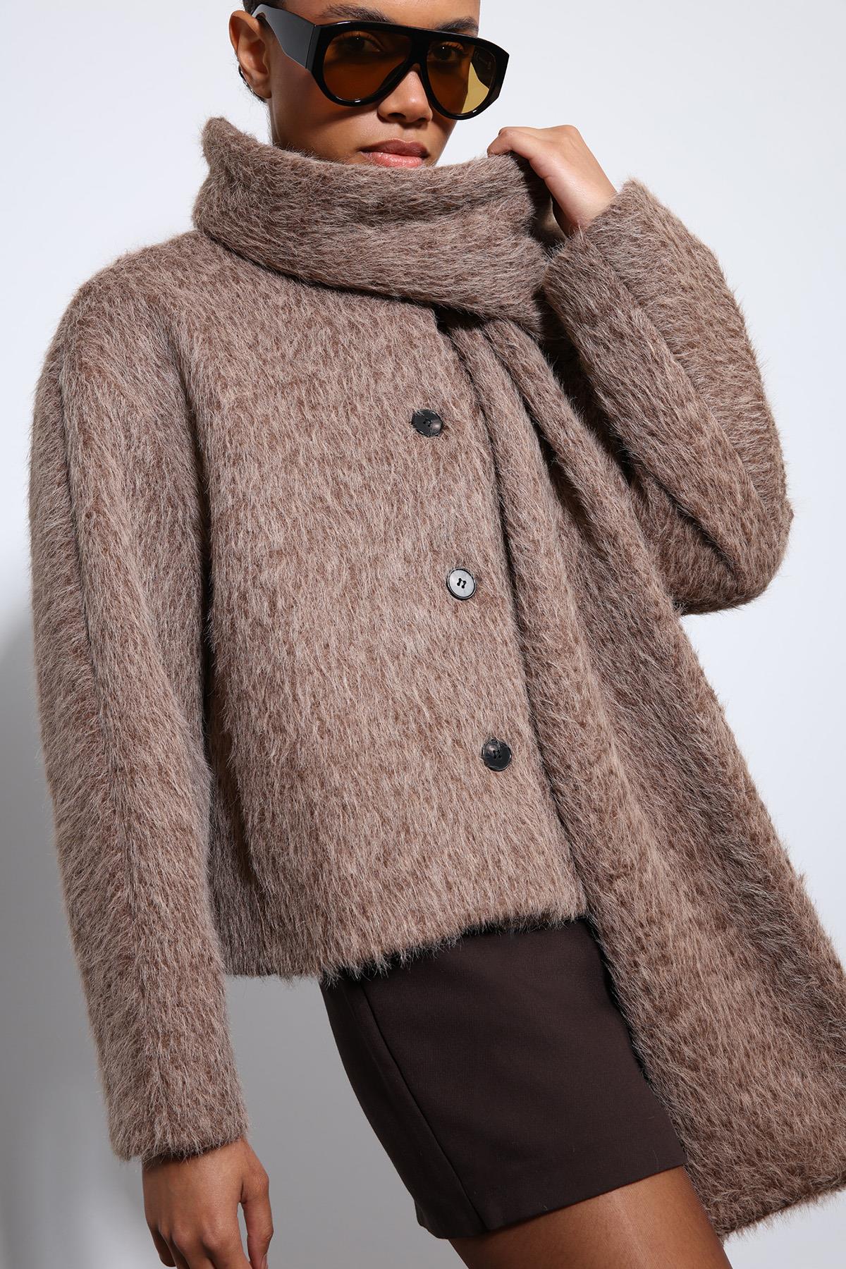 Kahve Atkı Yaka Suni Kürklü Kaban