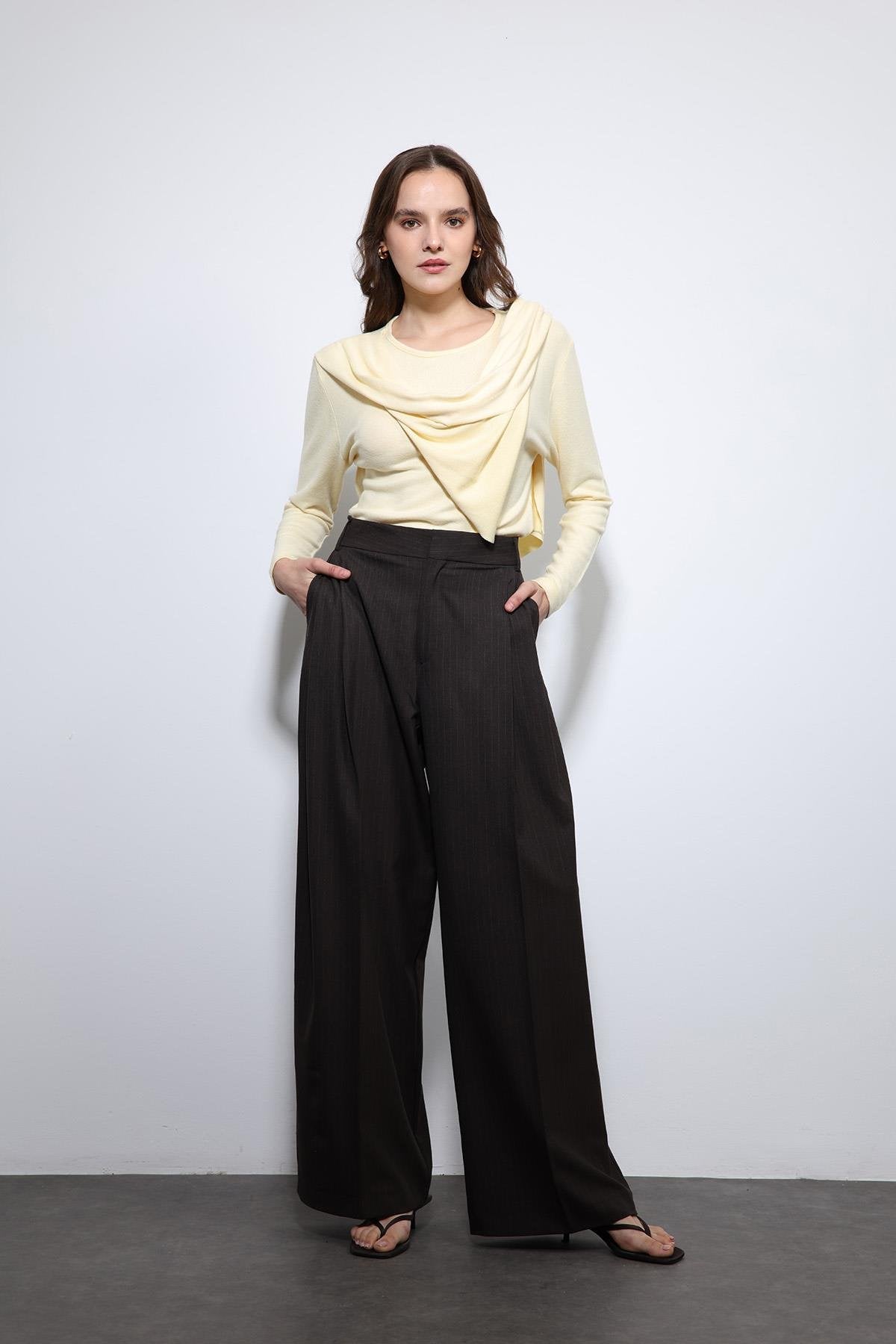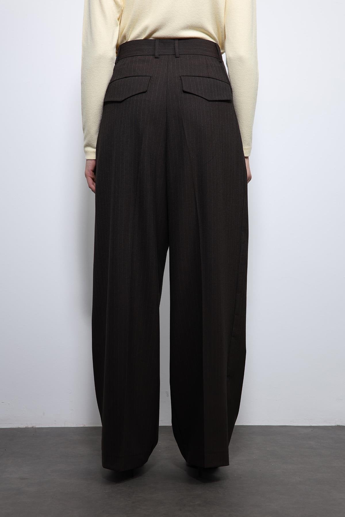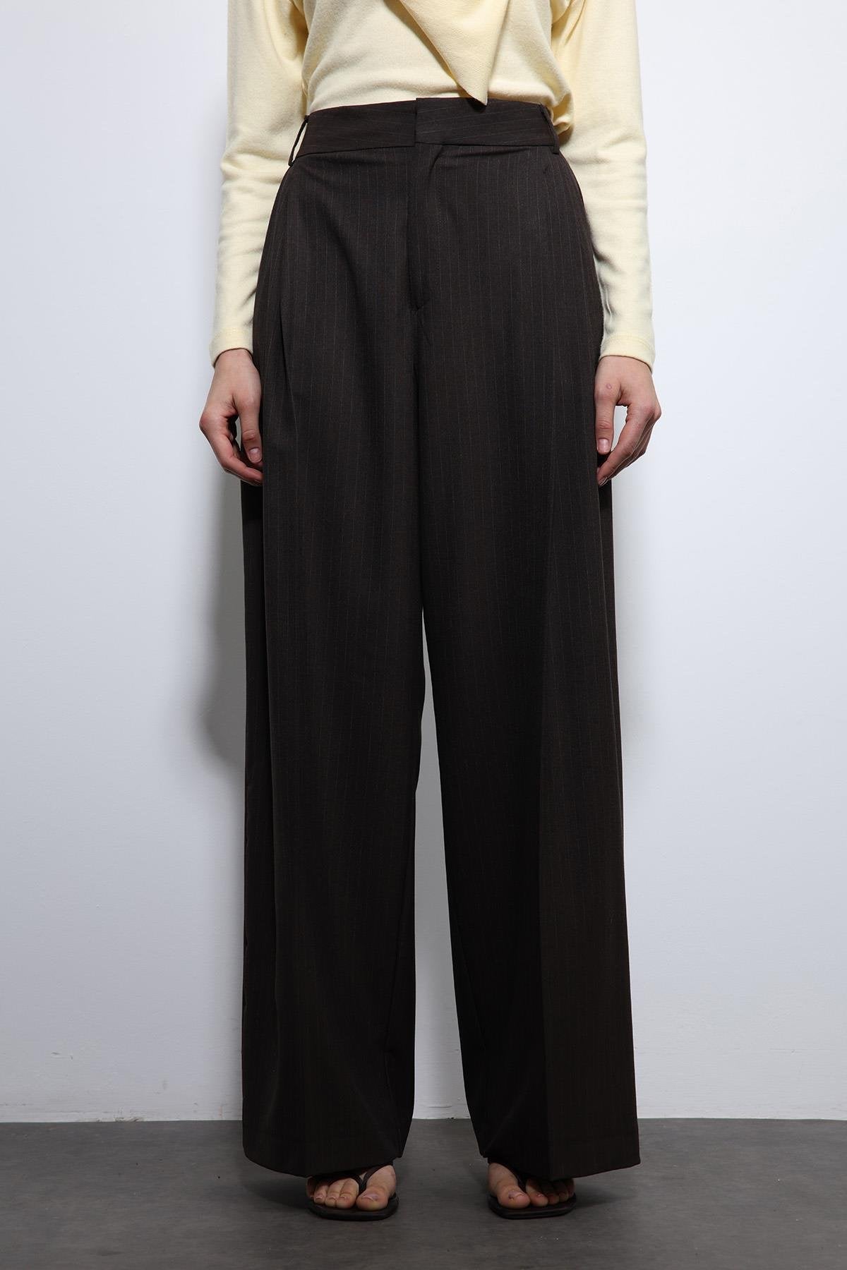 Kahve çizgili Geniş Paça Pantolon