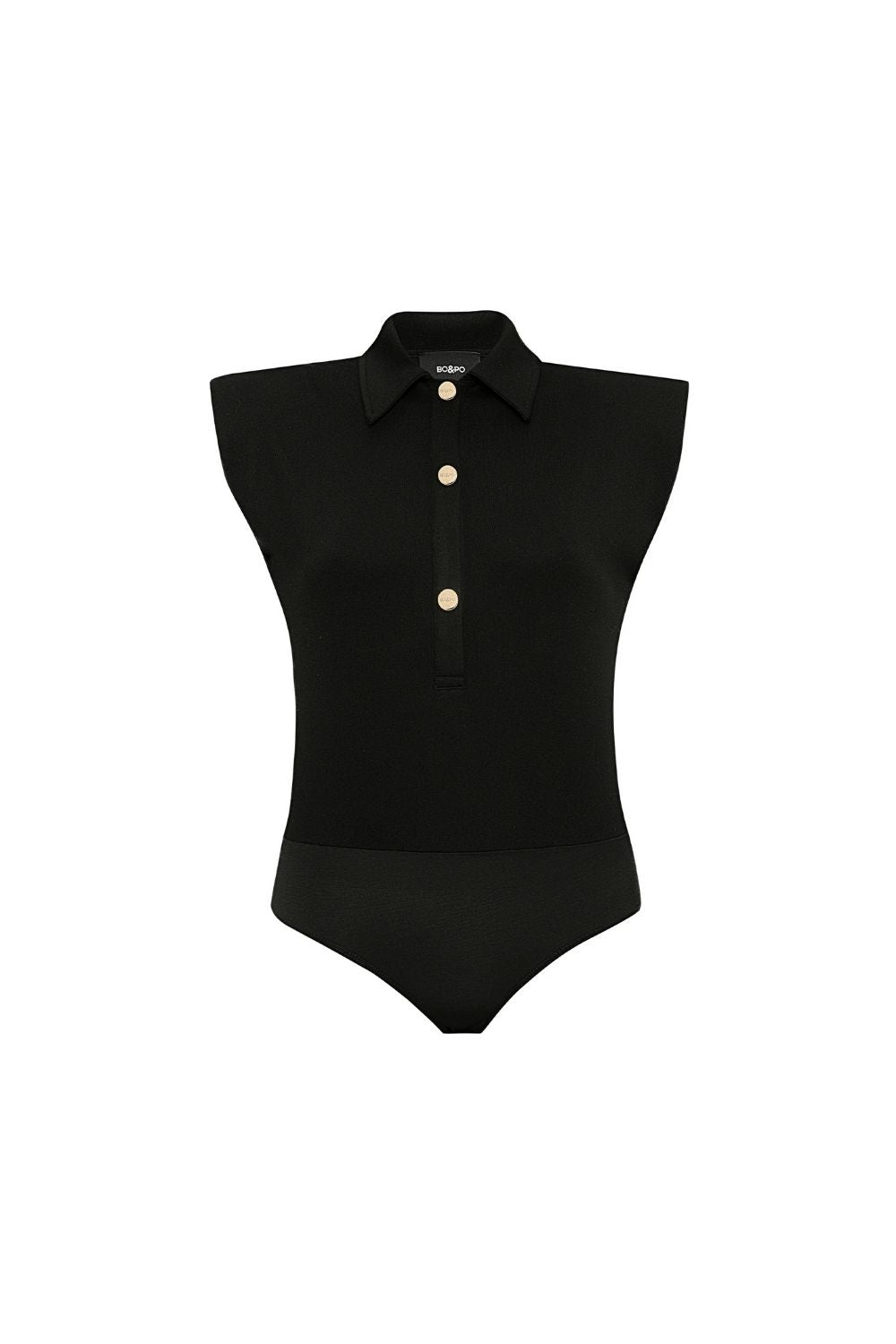 Omuzları Vatkalı Gold Düğme Detaylı Polo Yaka Top