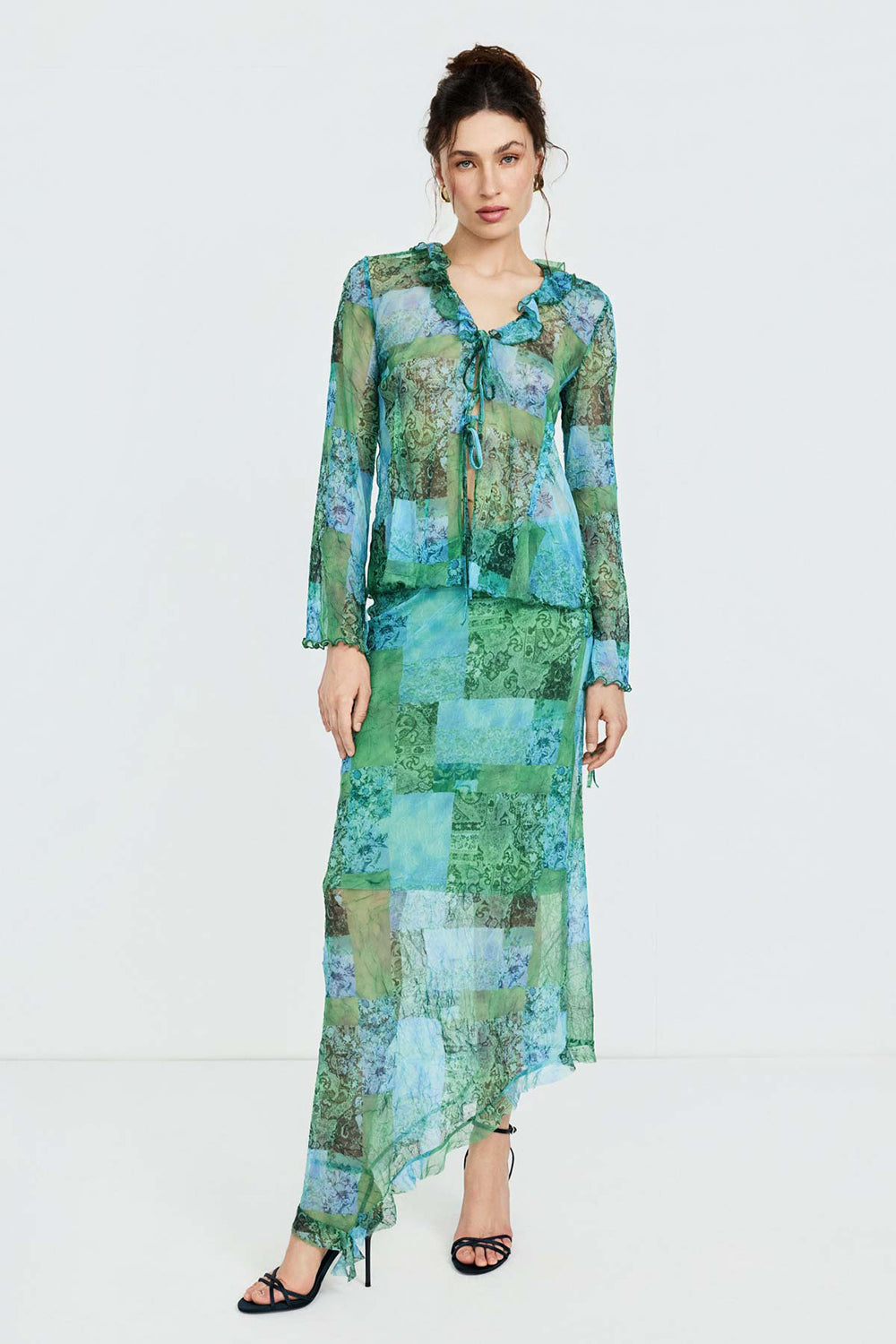 Aynı desenlerdeki Boneqa tül etekle tamamlandığında, şıklık ve uyumun kusursuz birlikteliğini yansıtan göz alıcı bir yaz görünümü elde edebilirsiniz. Hem şehirde şık bir gün için hem de tatilde zarif bir akşam stiline eşlik edecek çok yönlü bir tasarım.