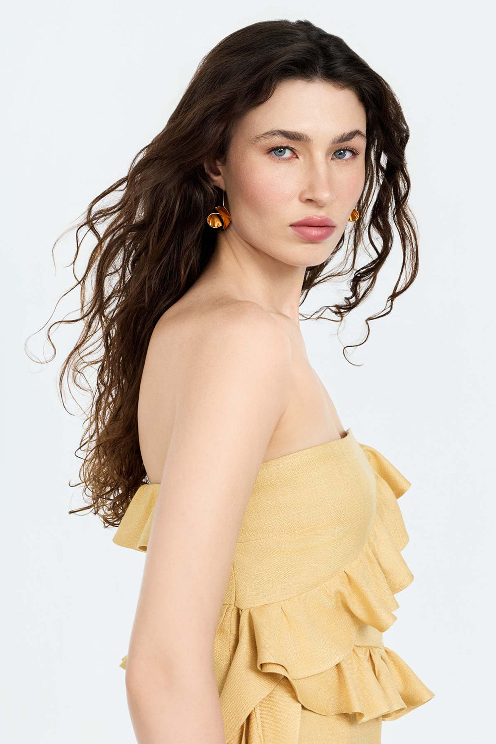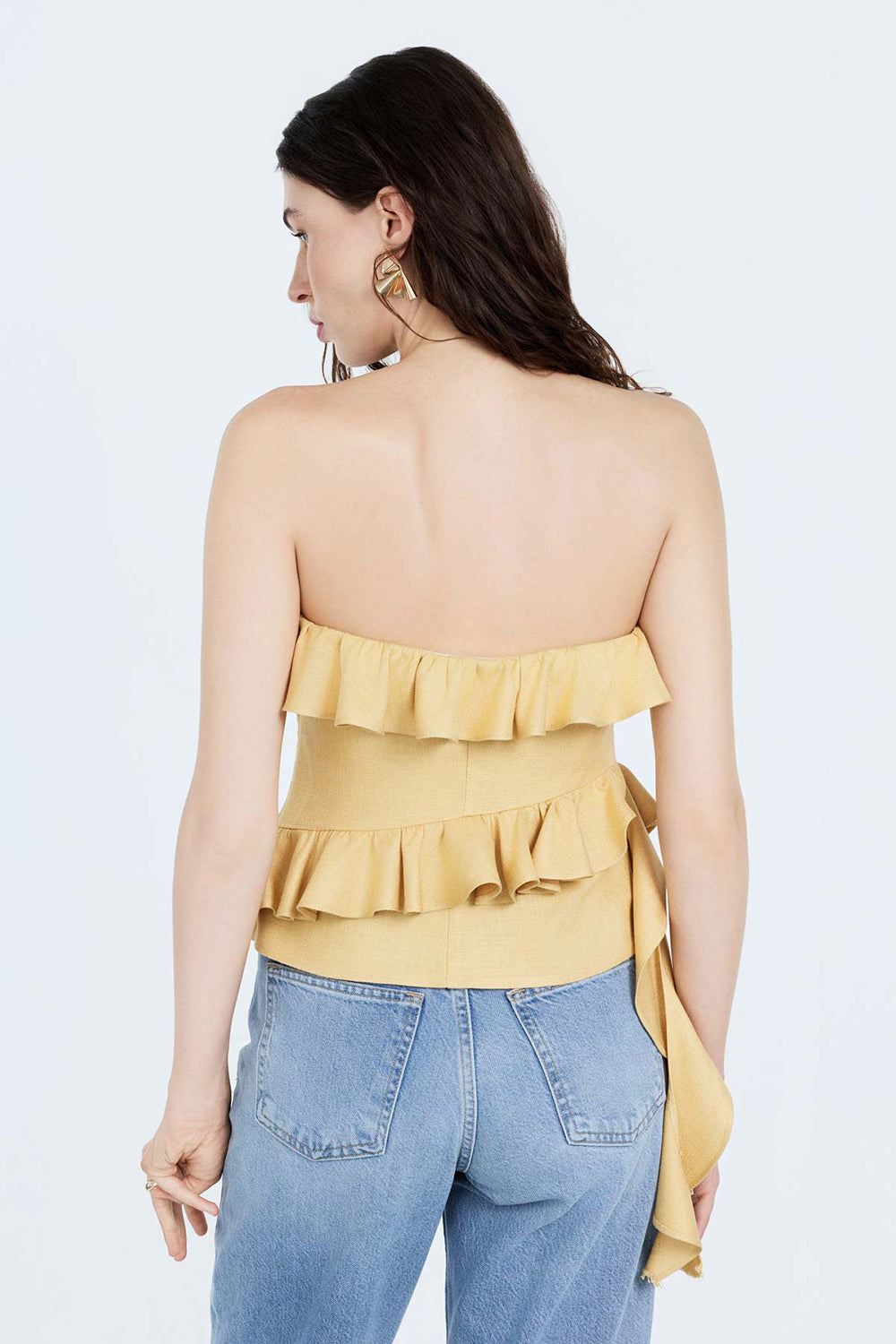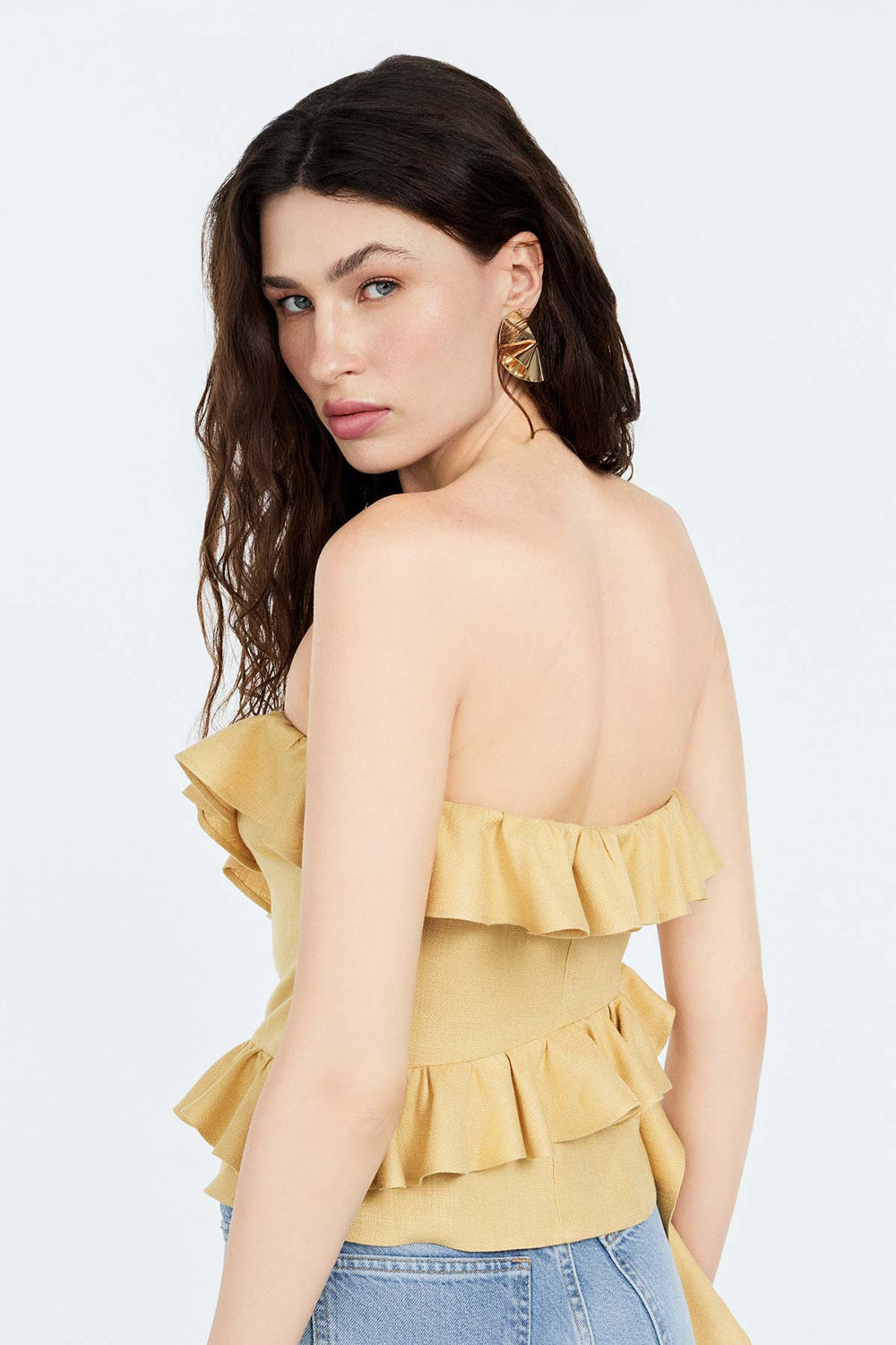Fırfır Detaylı Yandan Fermuarlı Straplez Top