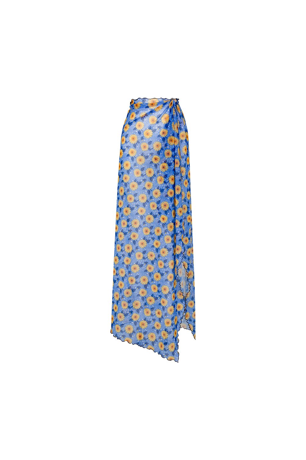 Alessia Ayçiçeği Desenli Bağcıklı Uzun Pareo Etek