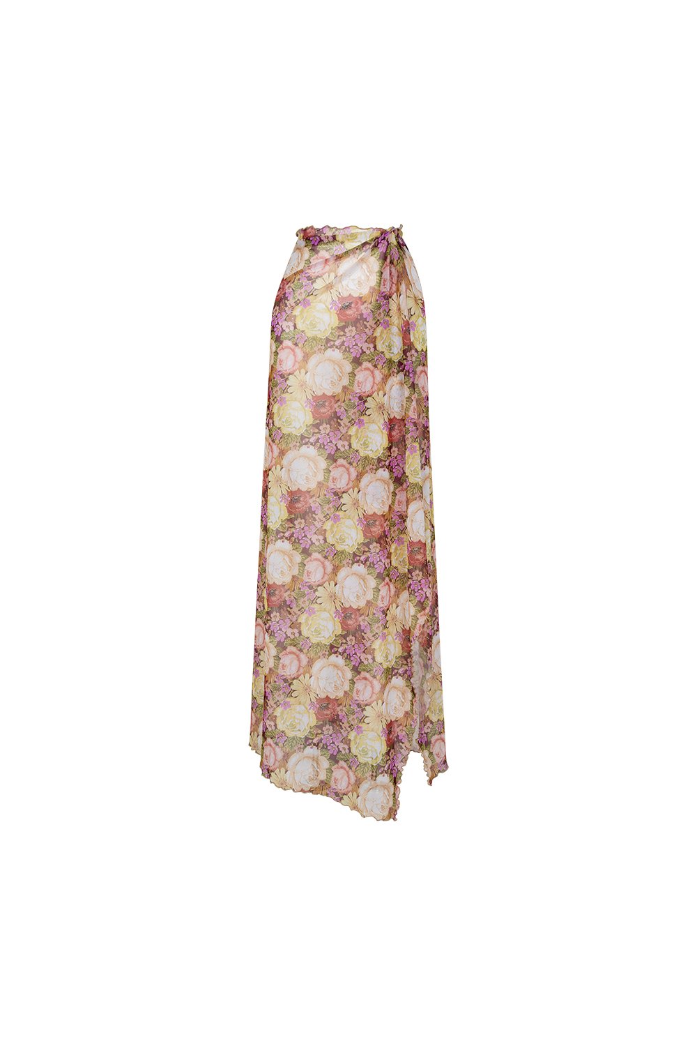 Alessia Renkli Pastel Desenli Bağcıklı Uzun Pareo Etek