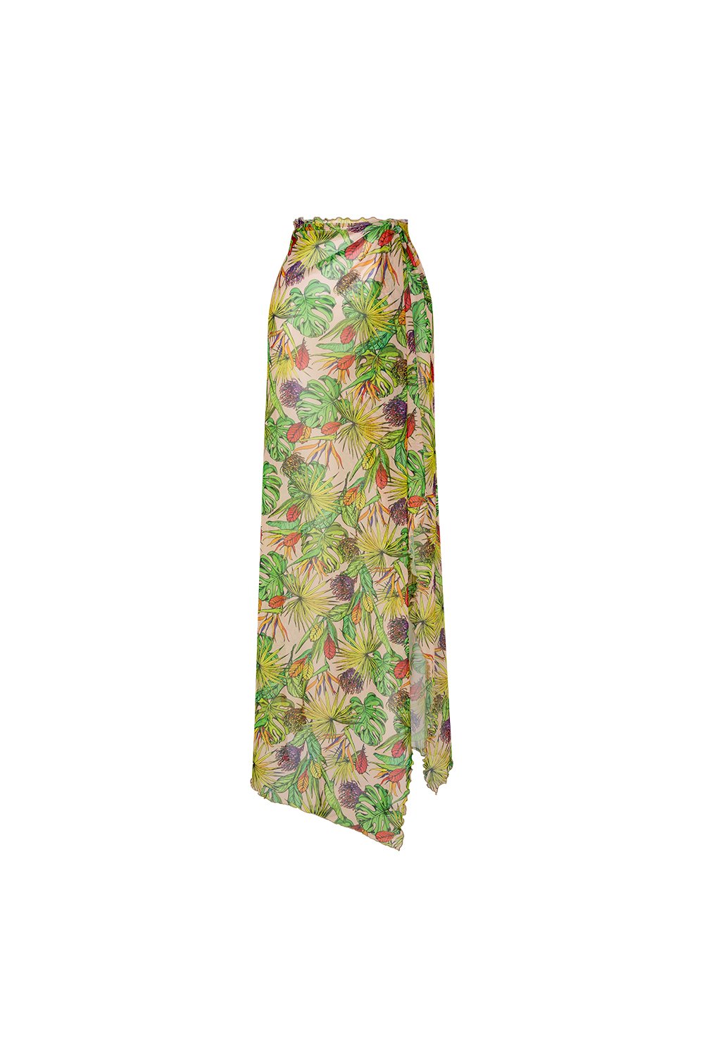 Alessia Sarı Mor Çiçek Desenli Bağcıklı Uzun Pareo Etek