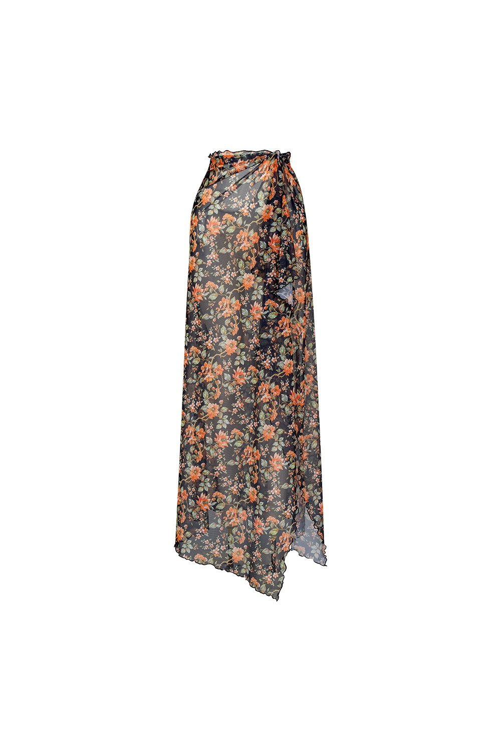 Alessia Turuncu Çiçek Desenli Bağcıklı Uzun Pareo Etek