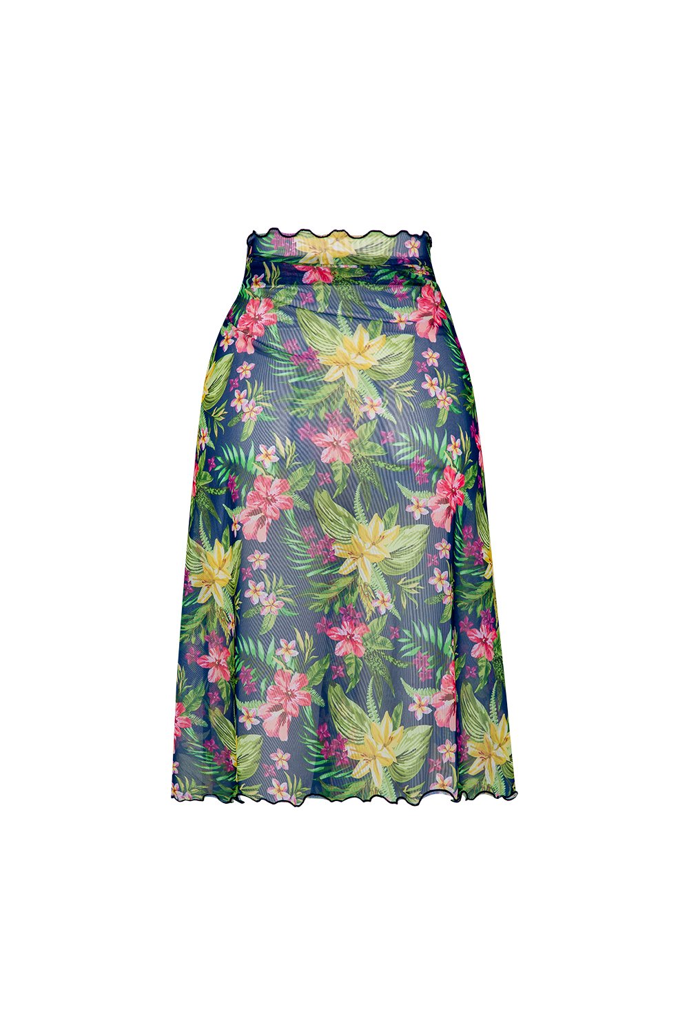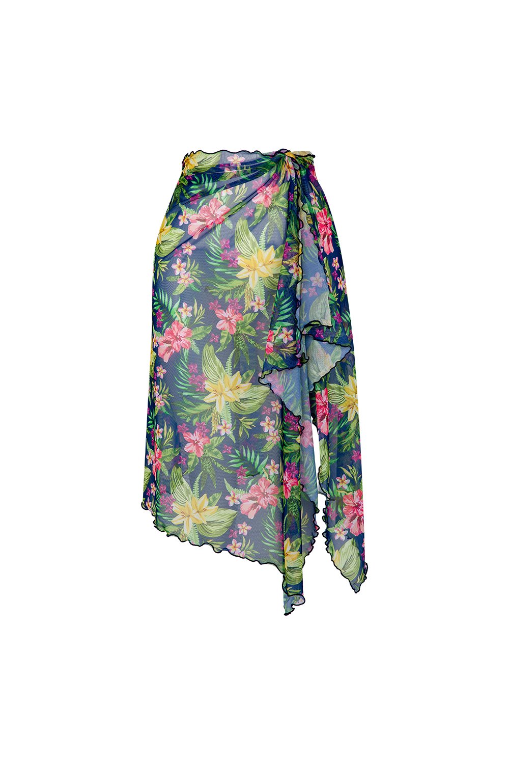 Callie Renkli Çiçek Desenli Büzgülü Volanlı Midi Pareo Etek