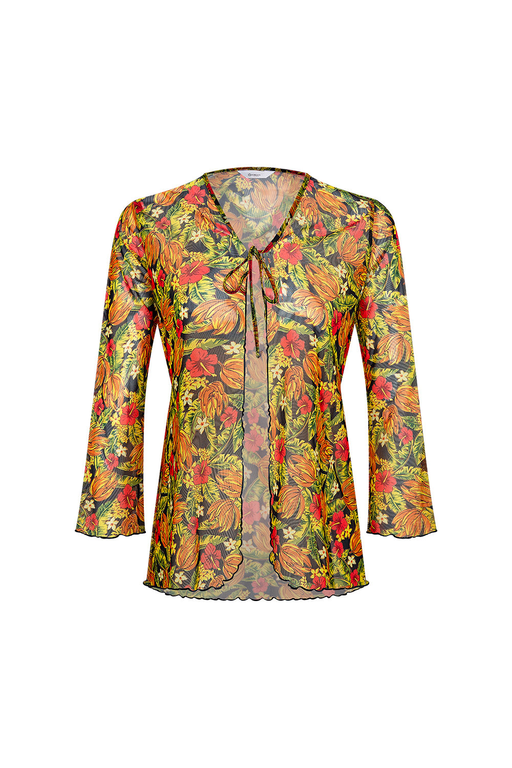 Cameo Turuncu Çiçek Desenli Önü Bağcıklı Gömlek Pareo