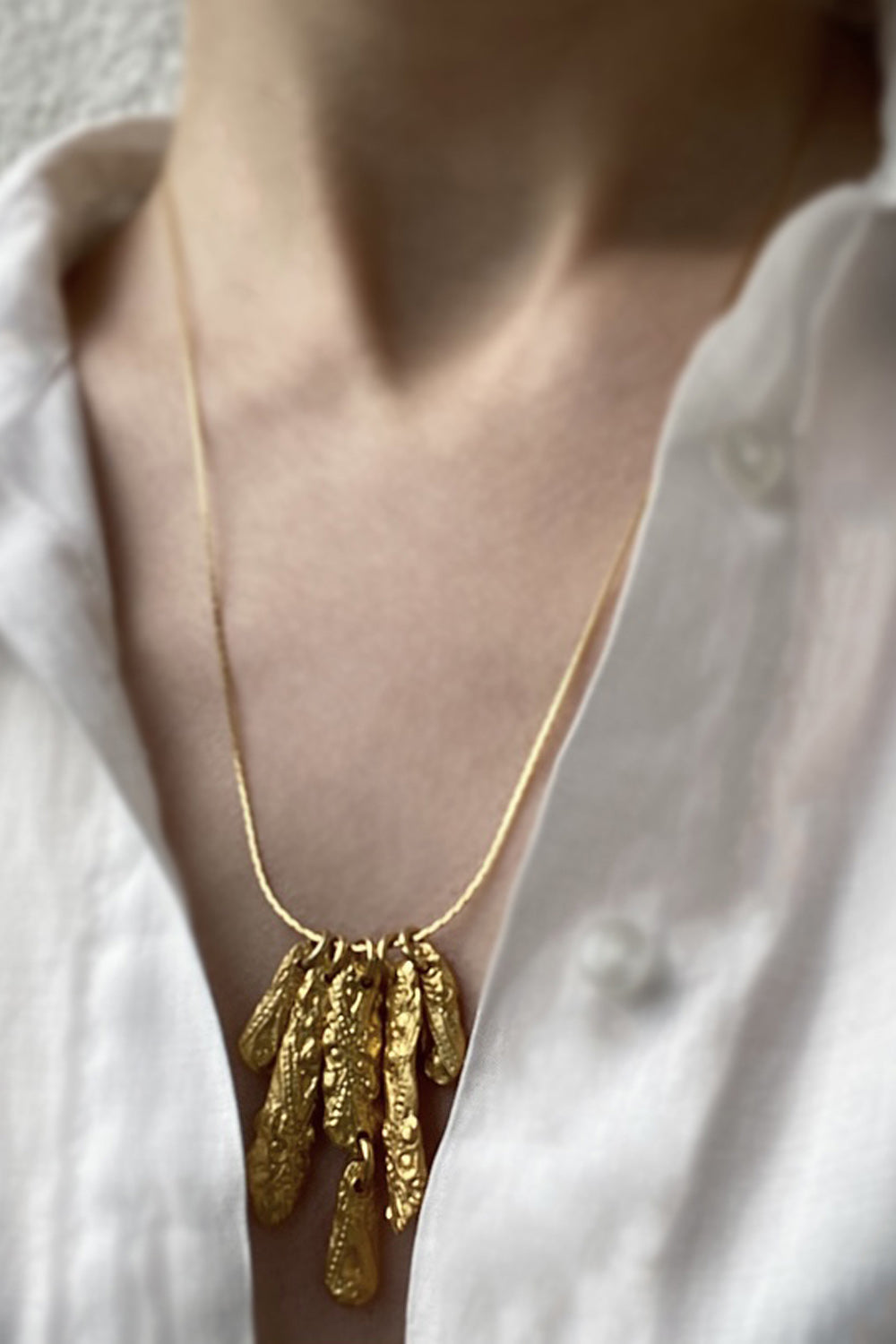 - Pirinç üzeri 22 ayar altın kaplama mine detaylı kolye.