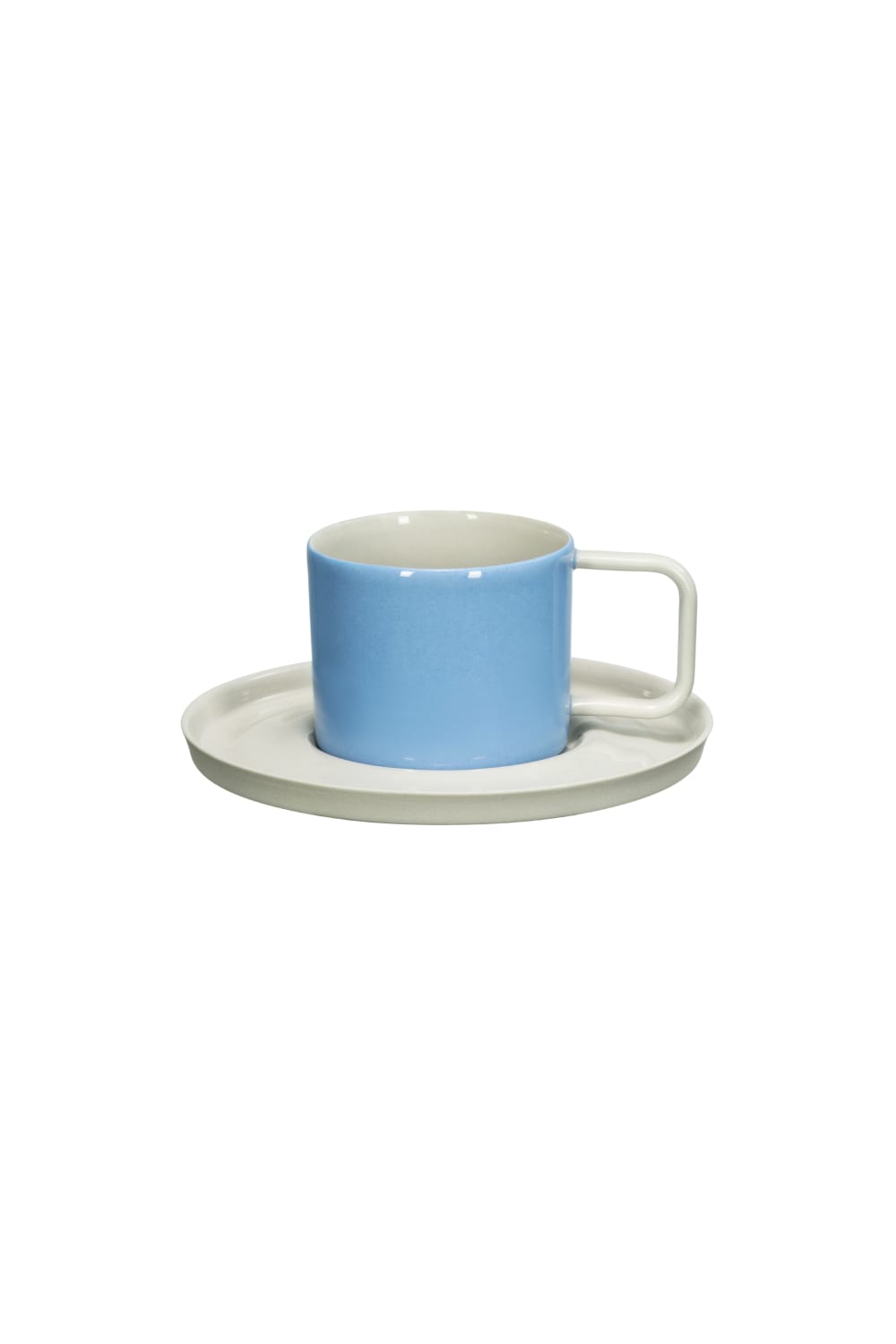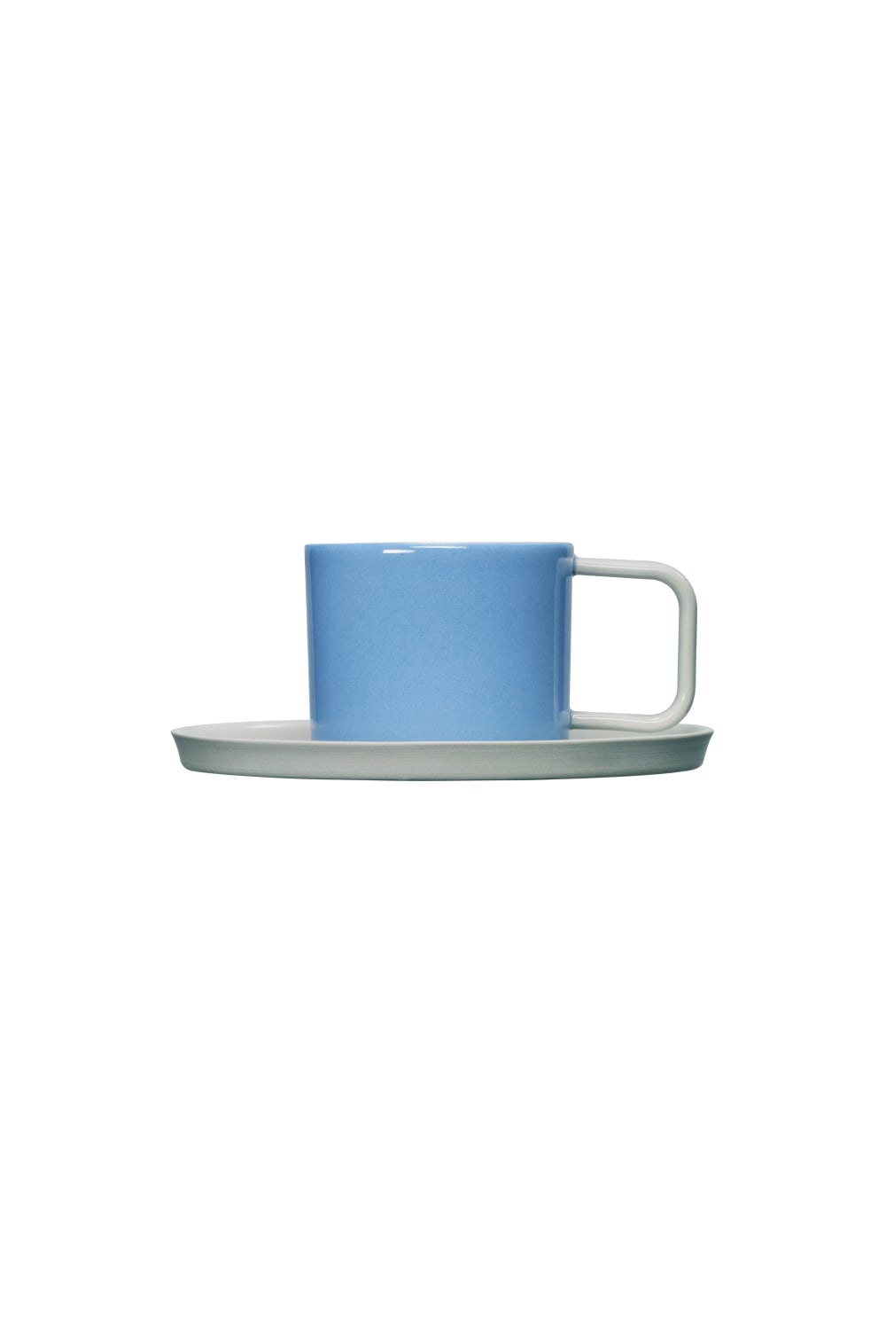 Josephine El Yapımı Porselen Türk Kahvesi Fincanı & Tabağı / Mavi - Gri