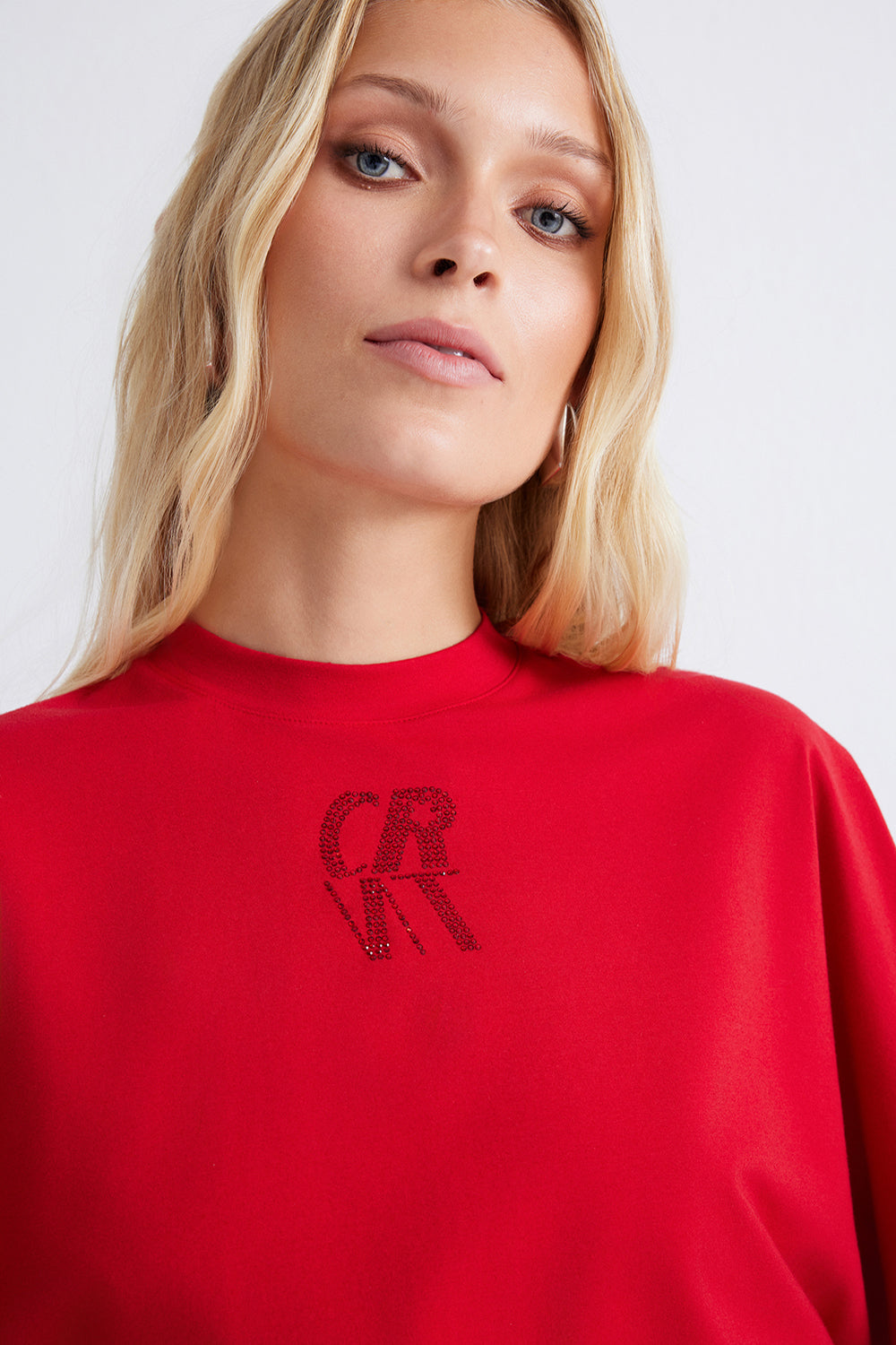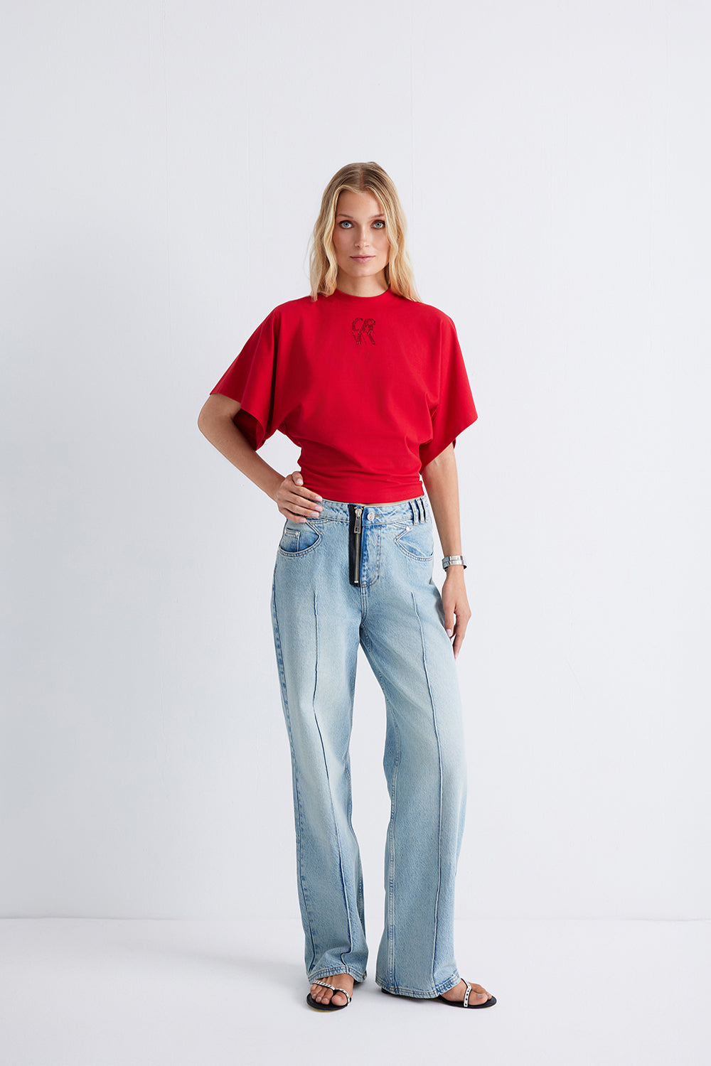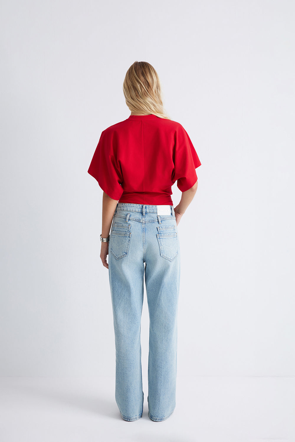 BATWING SLEEVE TOP FITTED WAIST RHINESTONE DETAILS