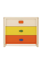 La cómoda Shuri tiene 3 cajones grandes con divertidas manijas. Las patas de la cómoda son de madera maciza de haya.
