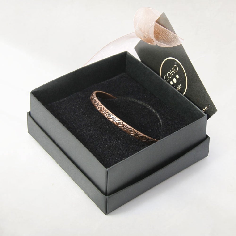 Coho bakır bileklikler, özel hediye kutusunda gönderilir. Kendinize veya sevdiklerinize hediye edebileceğiniz en şık ve anlamlı seçeneklerden biridir.