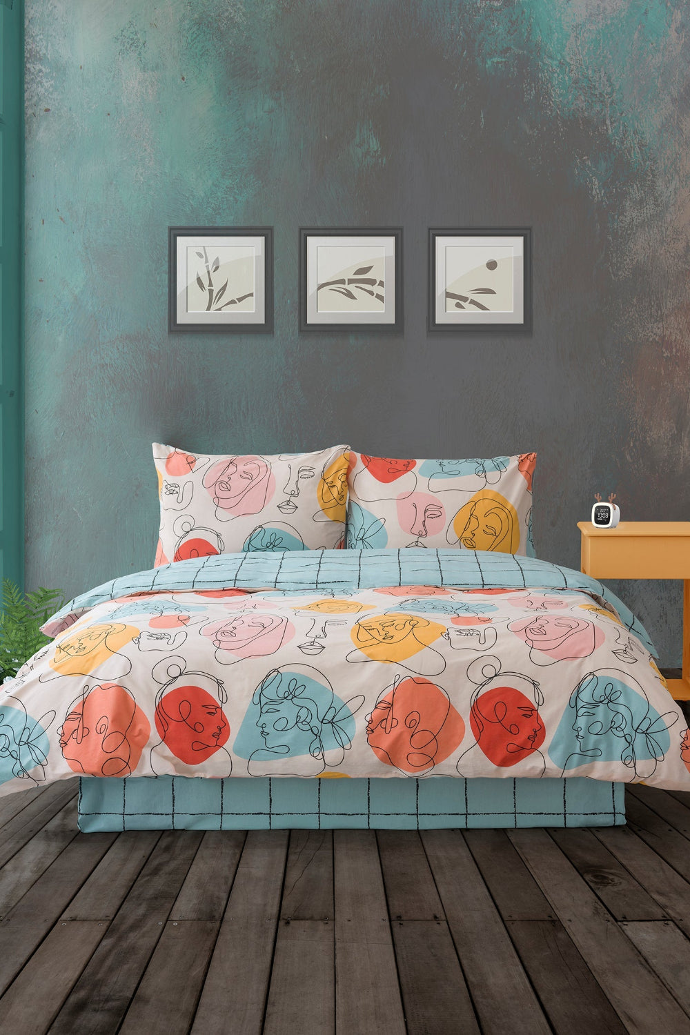 Popping Colors Çift Kişilik Lastikli Çarşaflı Nevresim Takımı Venus Mavi