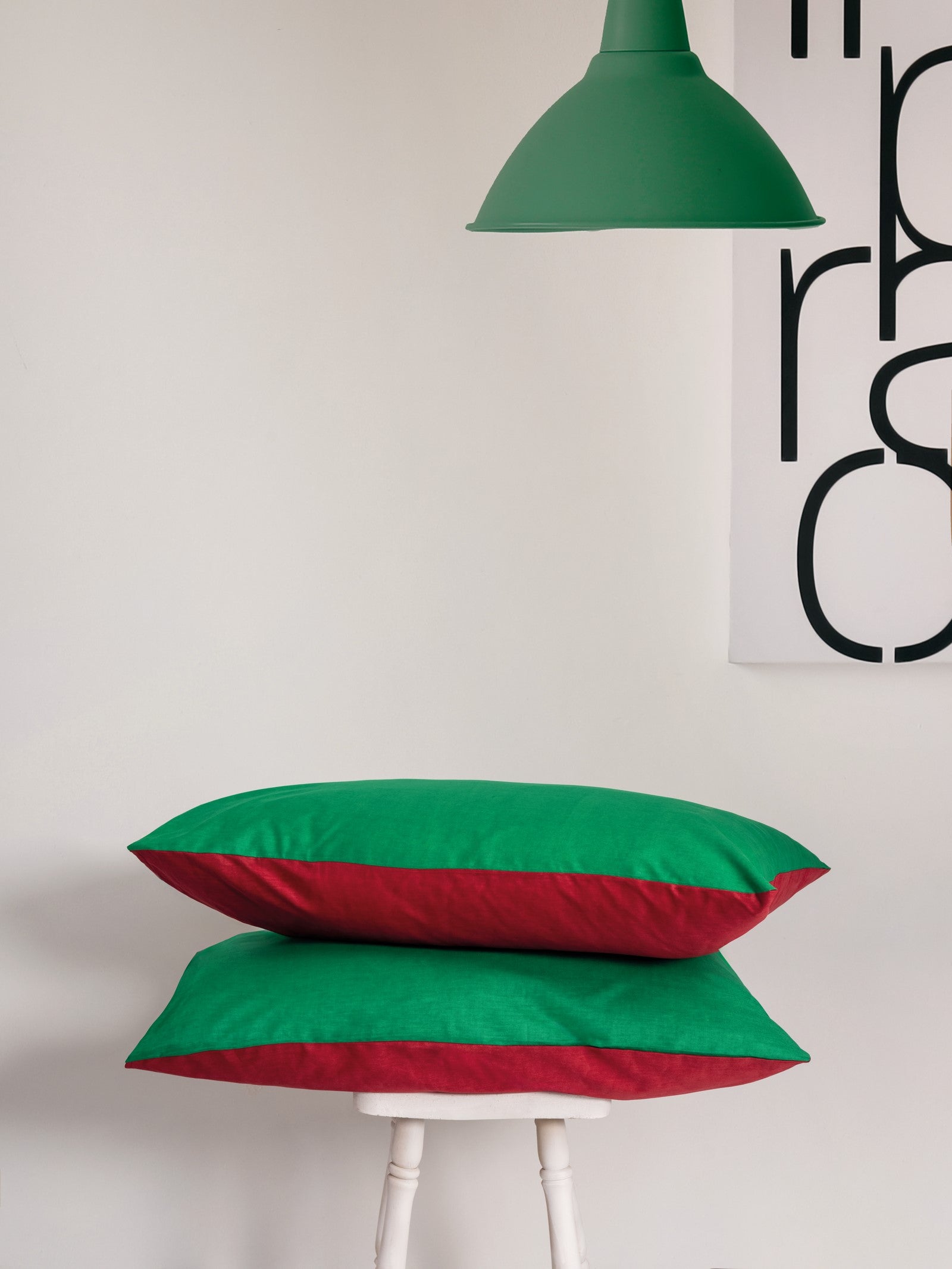 Popping Colors Çift Kişilik Lastikli Çarşaflı Nevresim Takımı Sage Kırmızı Fuşya