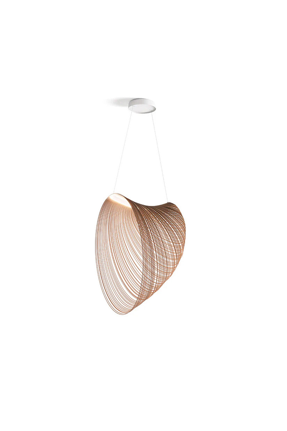 Tavana asıldığında, yerçekiminin etkisiyle kendi formunu bulan Illan, zarif dalgalanmalarla hacim kazanır ve havada süzülüyormuş gibi duran etkileyici bir siluet oluşturur