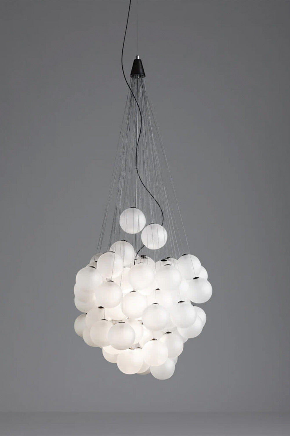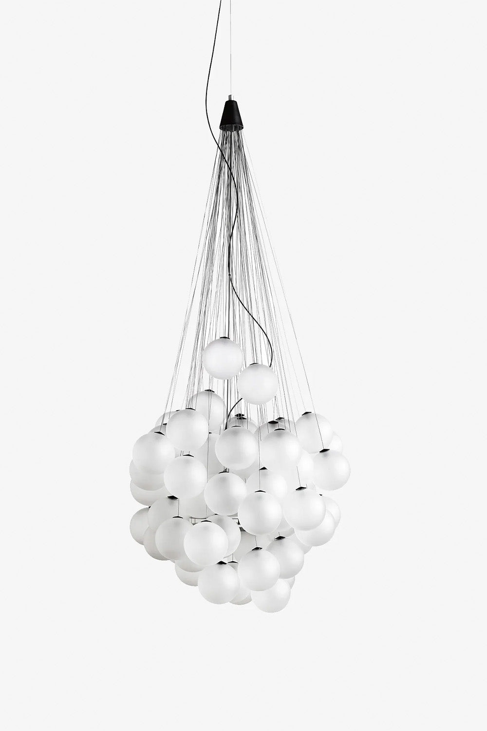 Farklı yüksekliklerdeki cam kürelerden oluşan Stochastic, kontrollü bir özgürlük içinde sonsuz kombinasyonlar sunar: her bir küre, farklı uzunluklardaki küçük çelik çubuklara bağlıdır ve bu çubuklar yapıya, kendi yaratıcı yaklaşımınıza göre yerleştirilebilir. Işık kaynağı – çift yüksek verimli LED modülü – kürelerin içine yerleştirilmiştir ve yukarıya ve aşağıya doğru sıcak, dolaylı bir ışık yayar.
