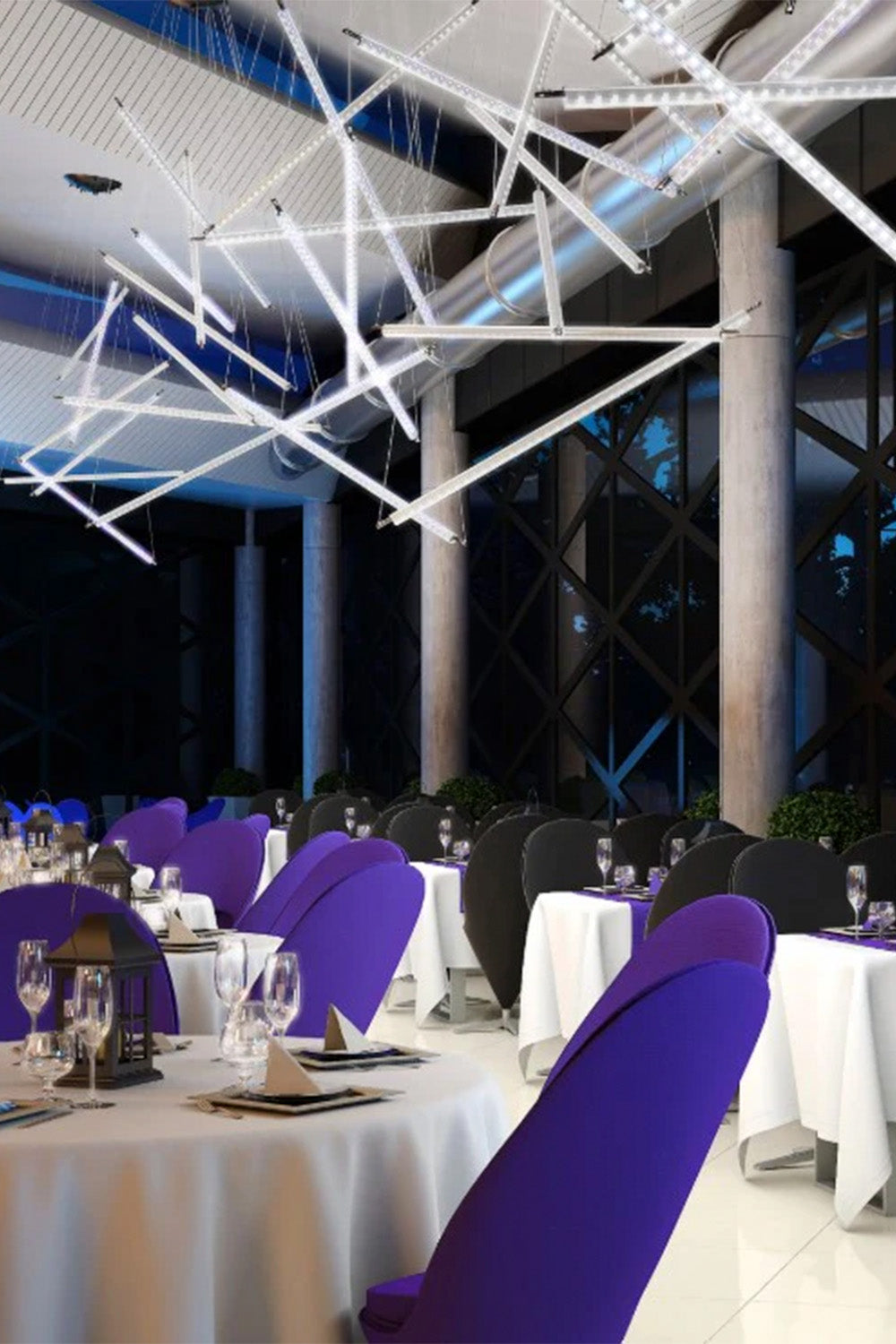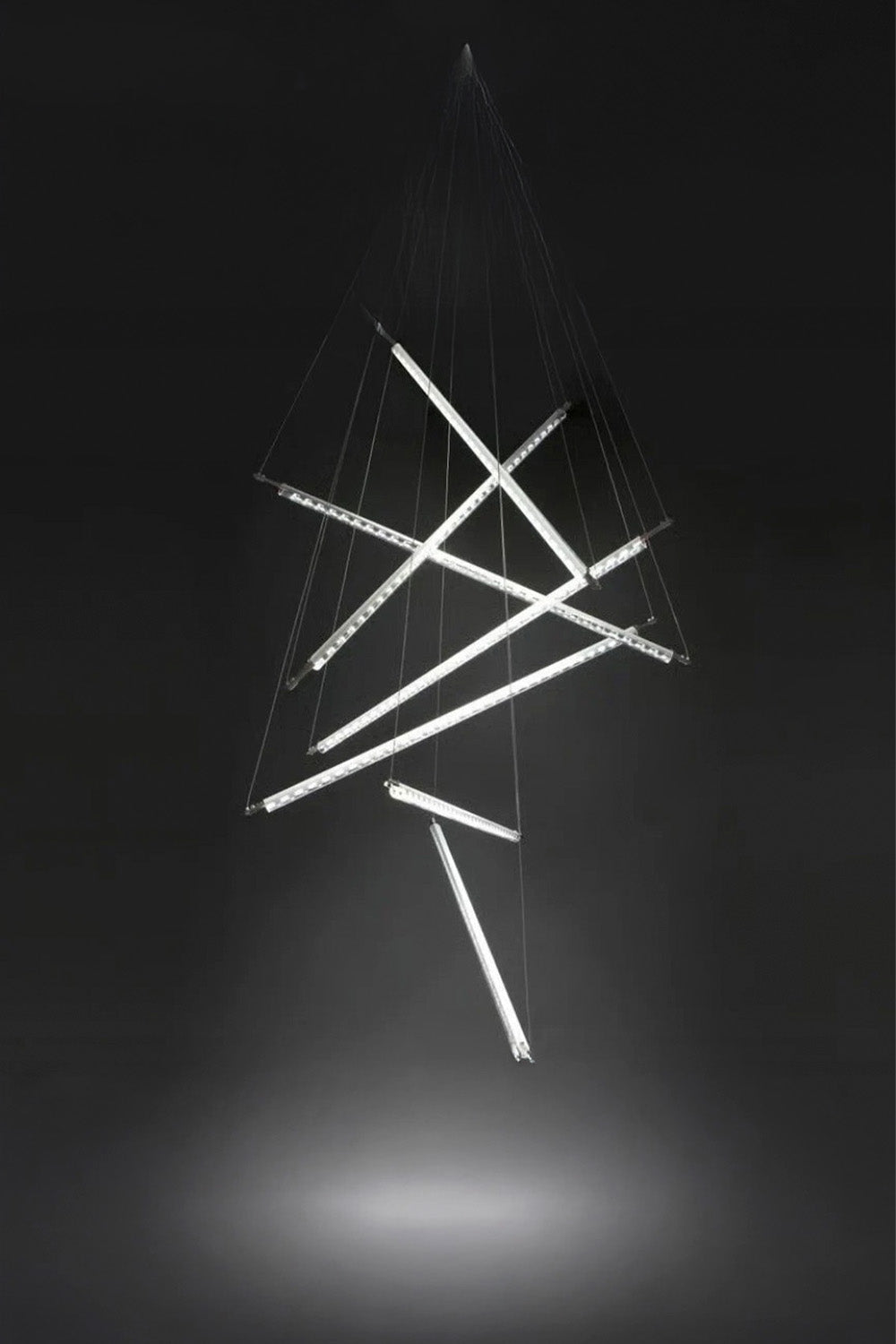 Ixion, yarısı buzlu, yarısı şeffaf olan ve ışığı daha dağınık veya daha doğrudan hale getirmek için döndürülebilen Tì cam tüplere sahip bir sarkıt lambadır.