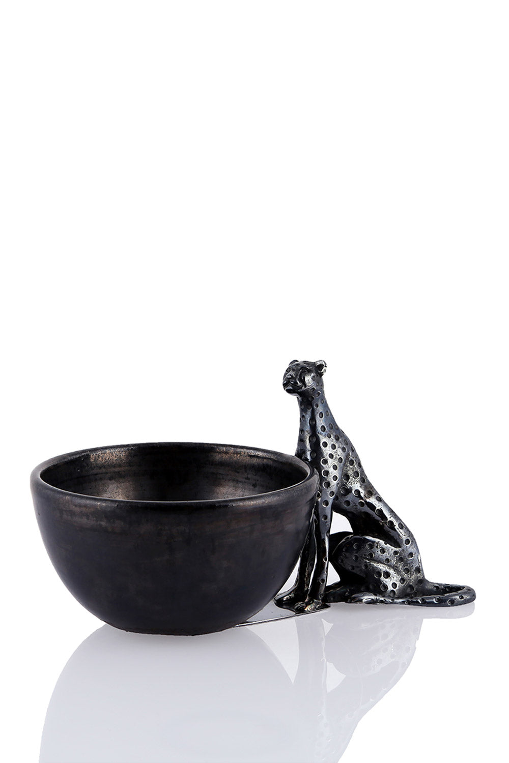 Okdiseli gümüş çita detayından oluşan seramik çerezlik